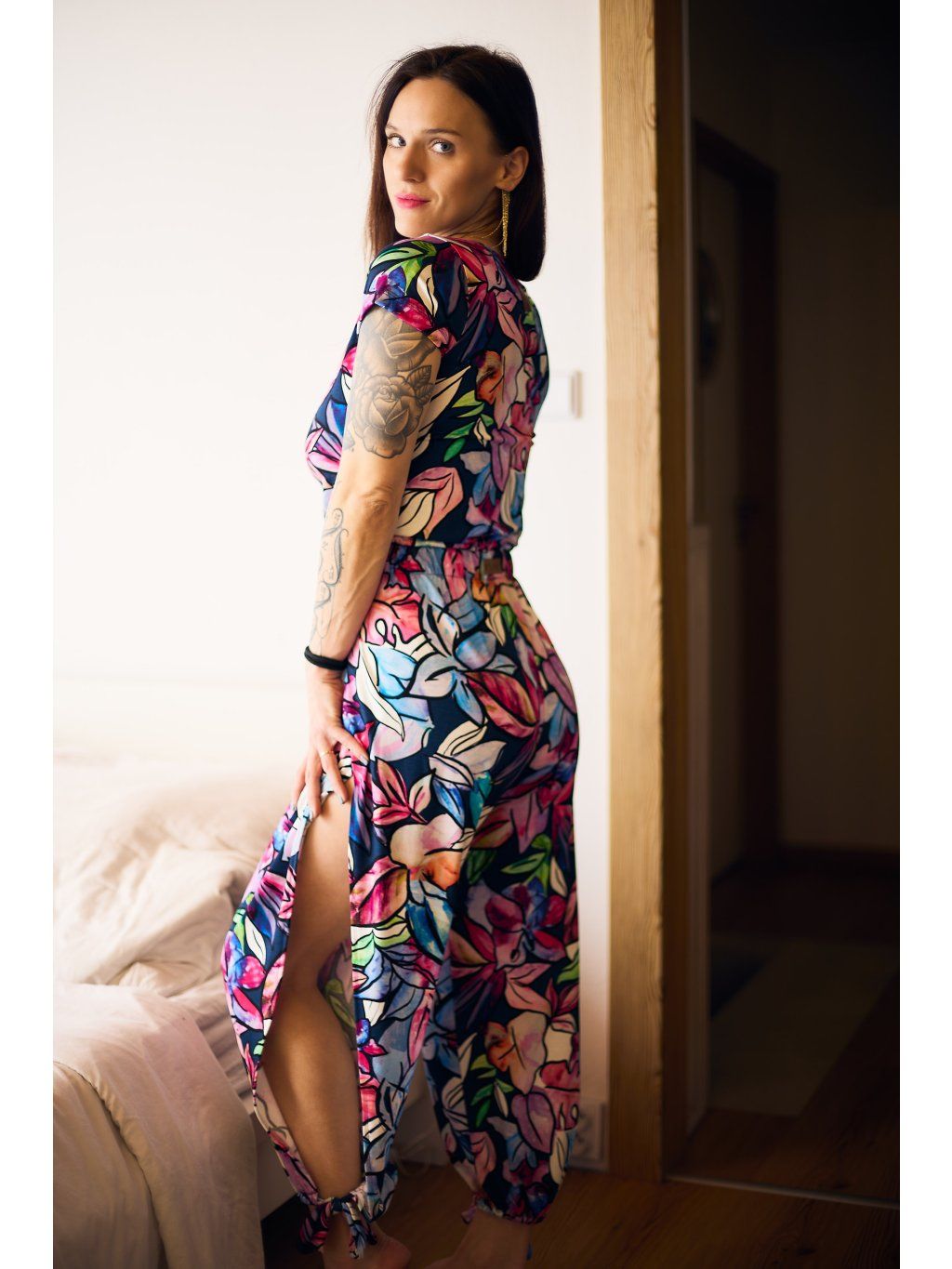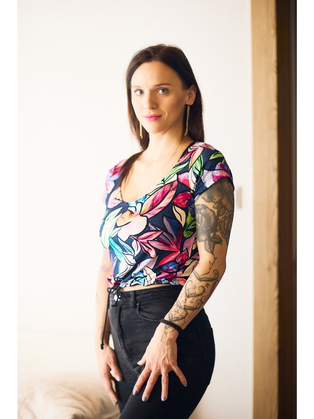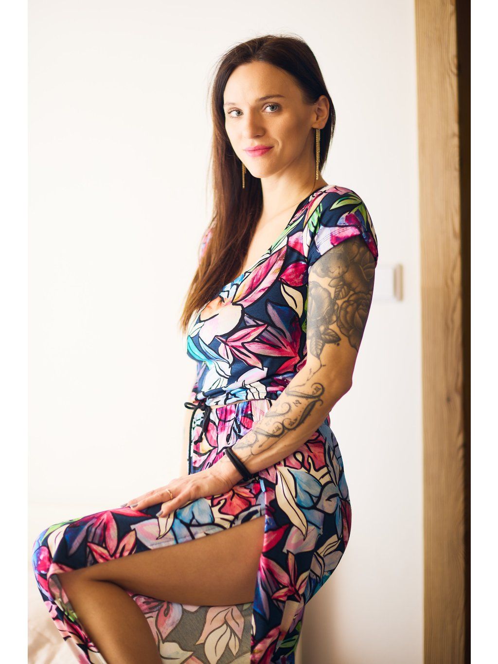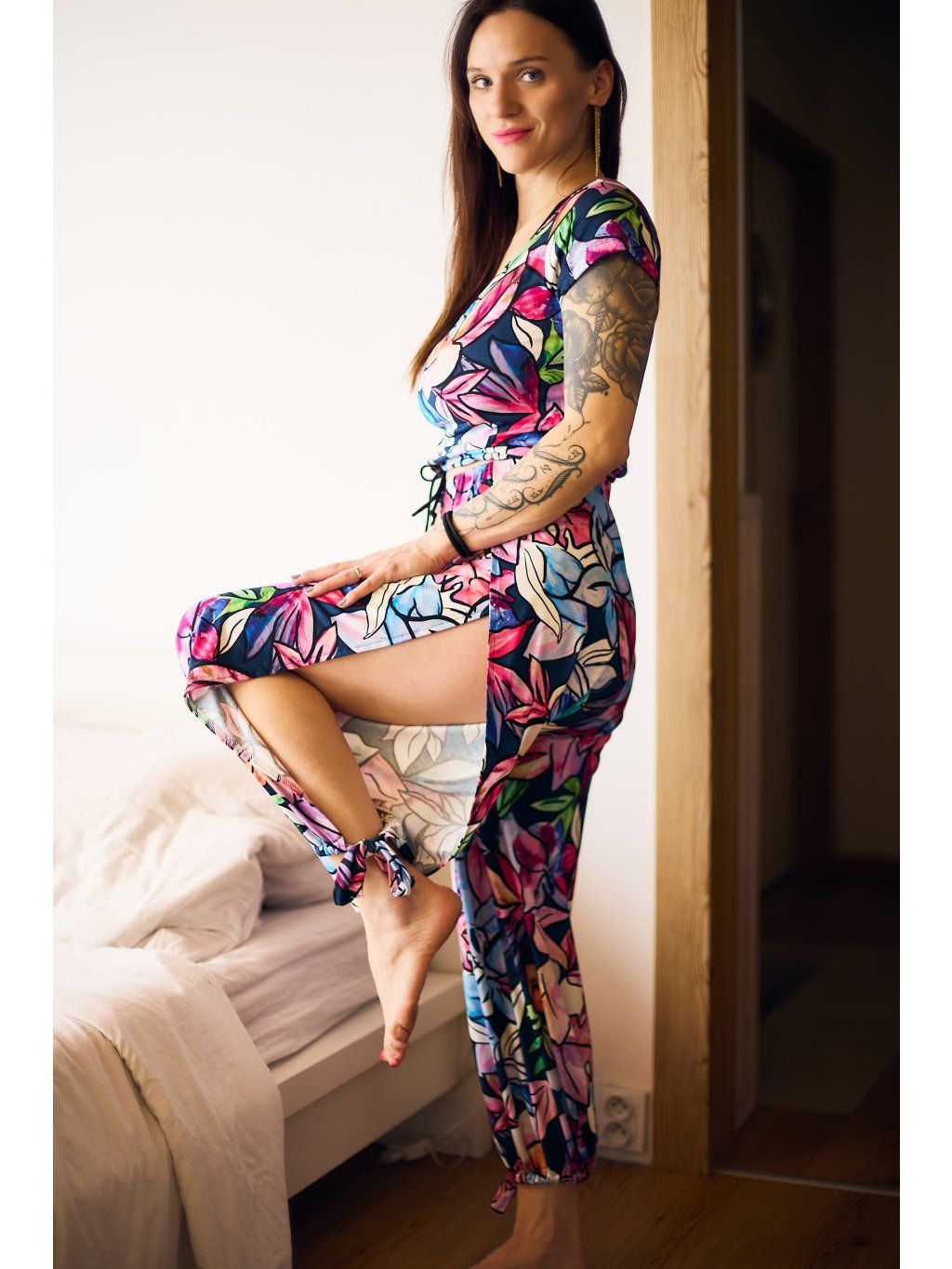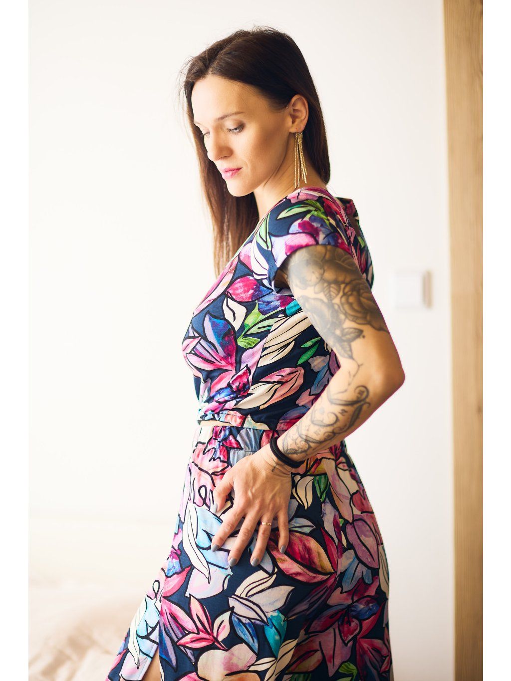 Tyto kojící vrchní díly z kolekce "KOMBINUJ" II. mají větší výstřih, dlouhý rukáv s nápletem a vpředu mají šňůrku na stažení. V nabídce máme spoustu barevných variant. Tento materiál je hodně elastický a slaboučký úplet viskóza/elastan a má barevný digitální tisk. Je na zavazování na černou šňůrku.
