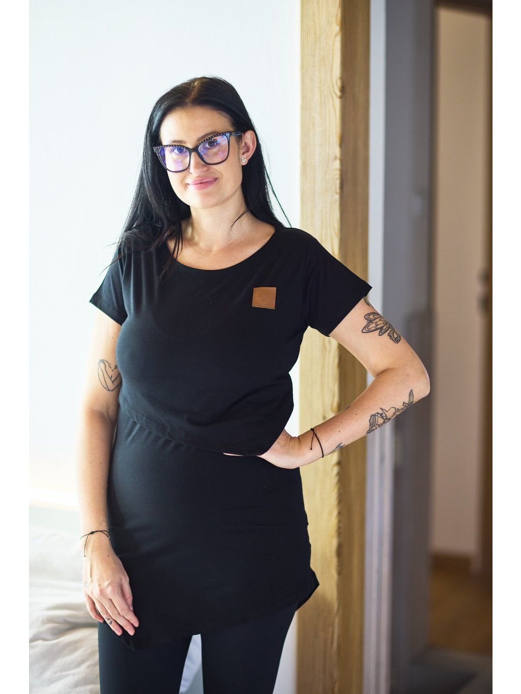 Asymetrické kojící tričko BLACK - Maminka (krátký rukáv)