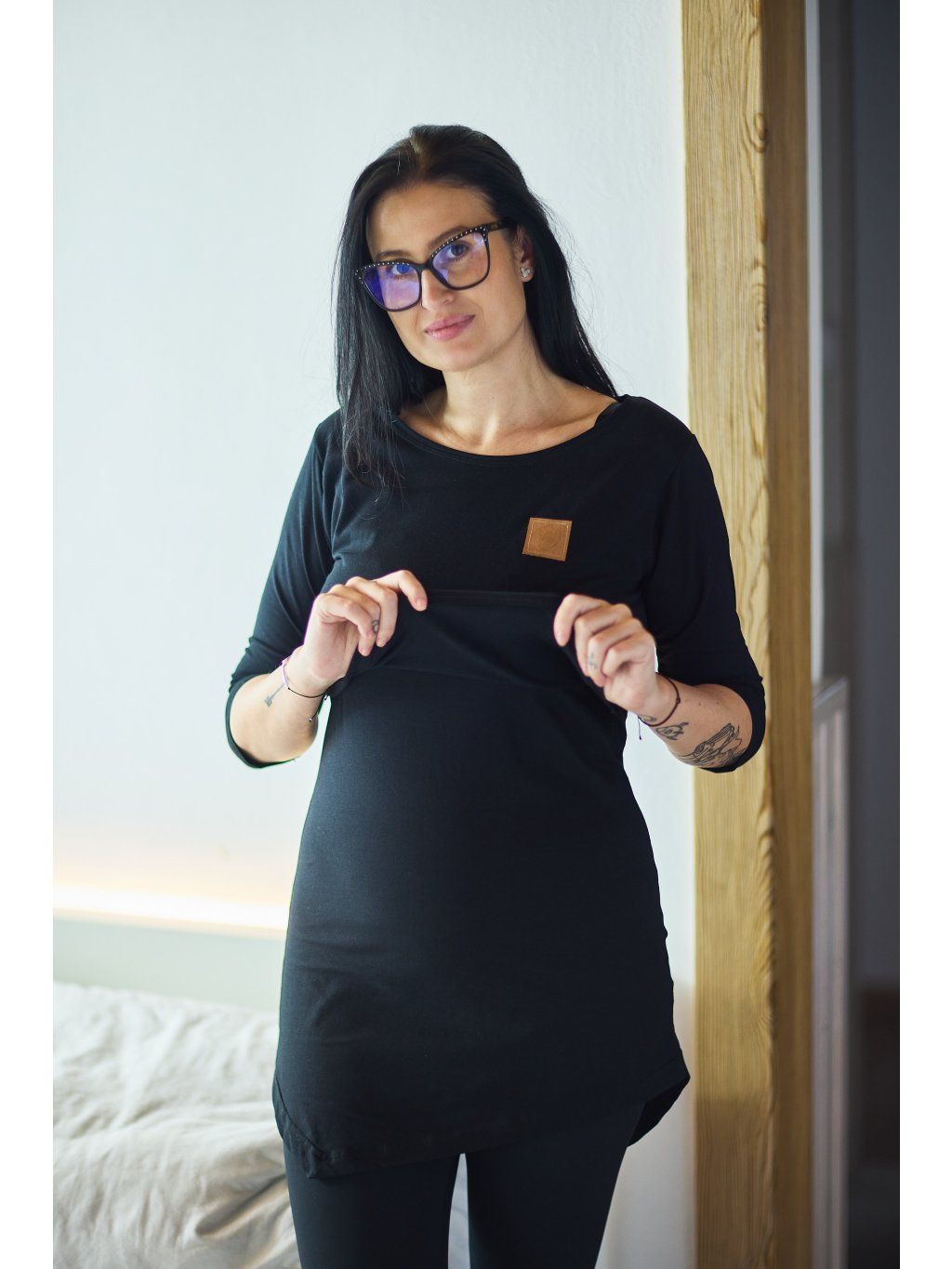Asymetrické kojící tričko BLACK - Maminka (tříčtvrteční rukáv)