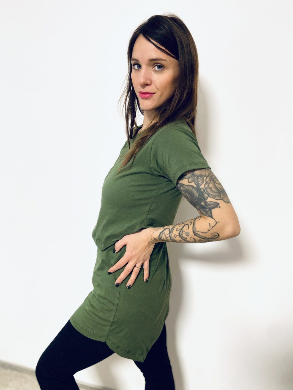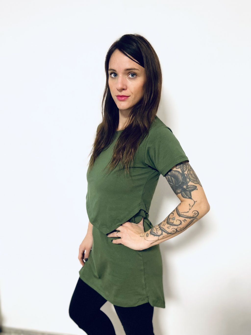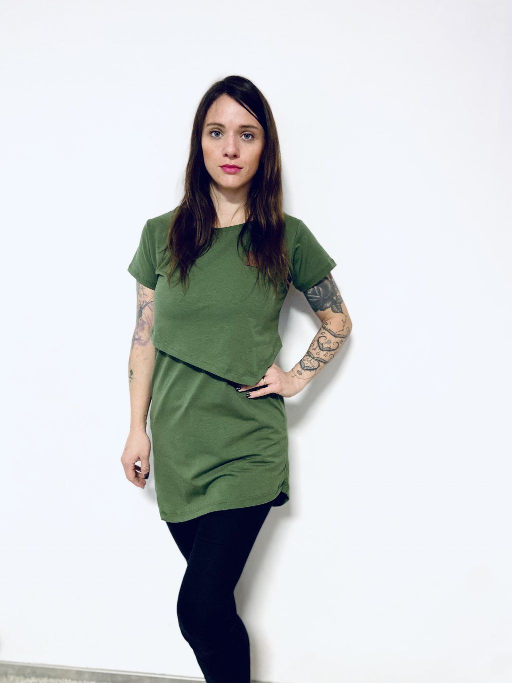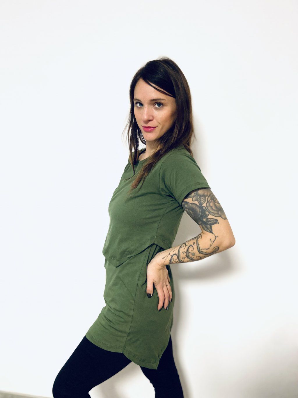 Kojící trička mají delší a pohodlný střih. Materiál je úplet bavlna/elastan. Stačí odhrnout vrchní díl, pod kterým je hlubší výstřih, a vy tak můžete pohodlně a diskrétně nakojit.