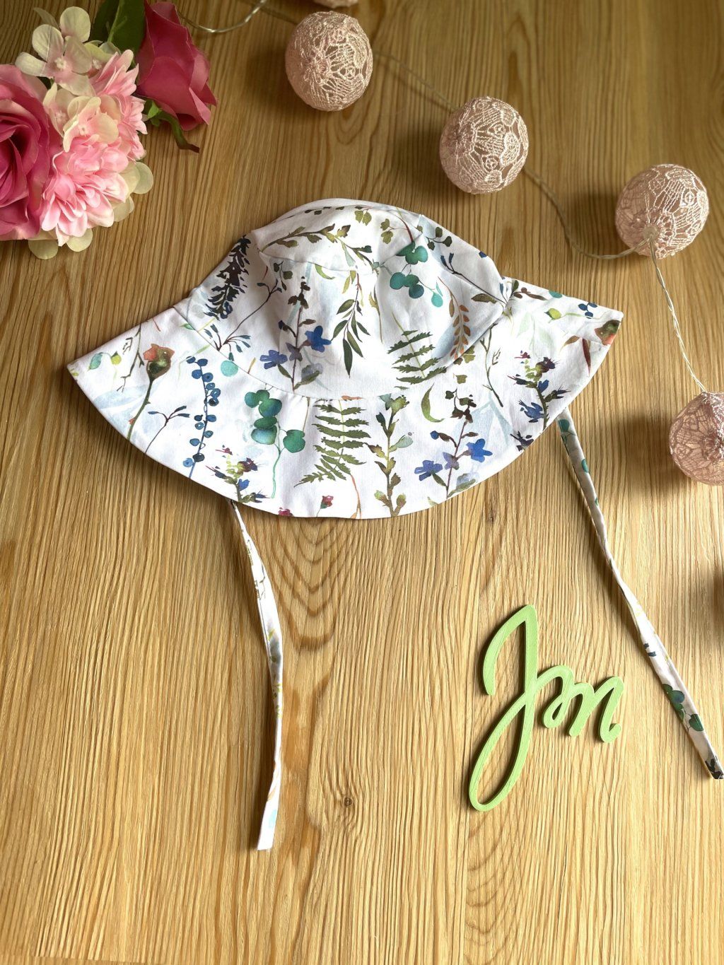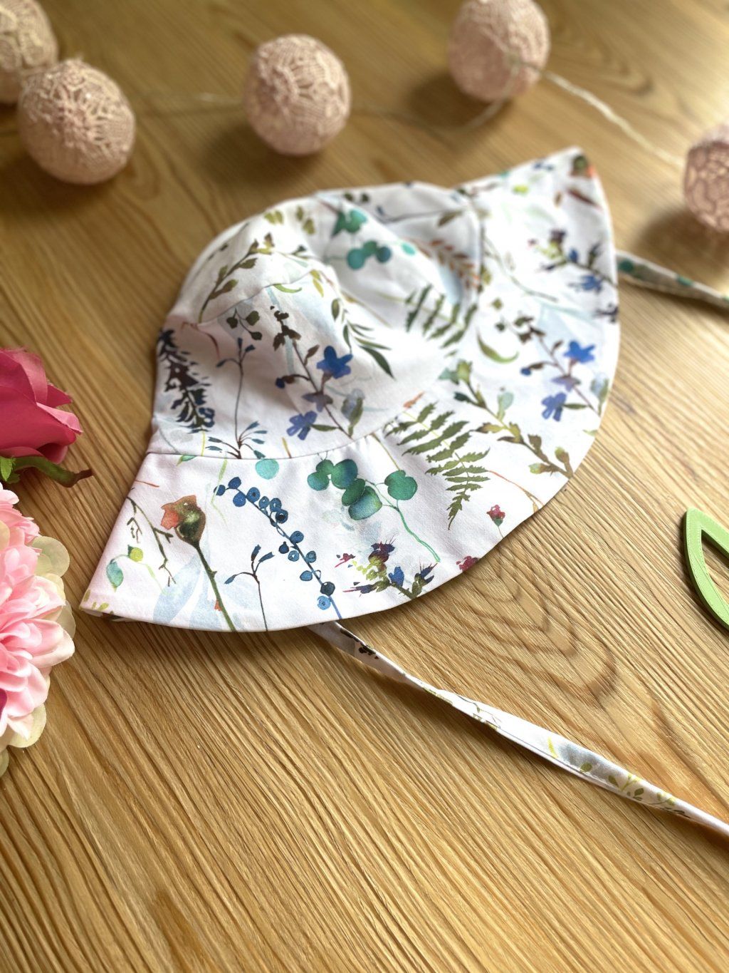 Krásný romantický klobouček z příjemné bavlněné tkaniny.