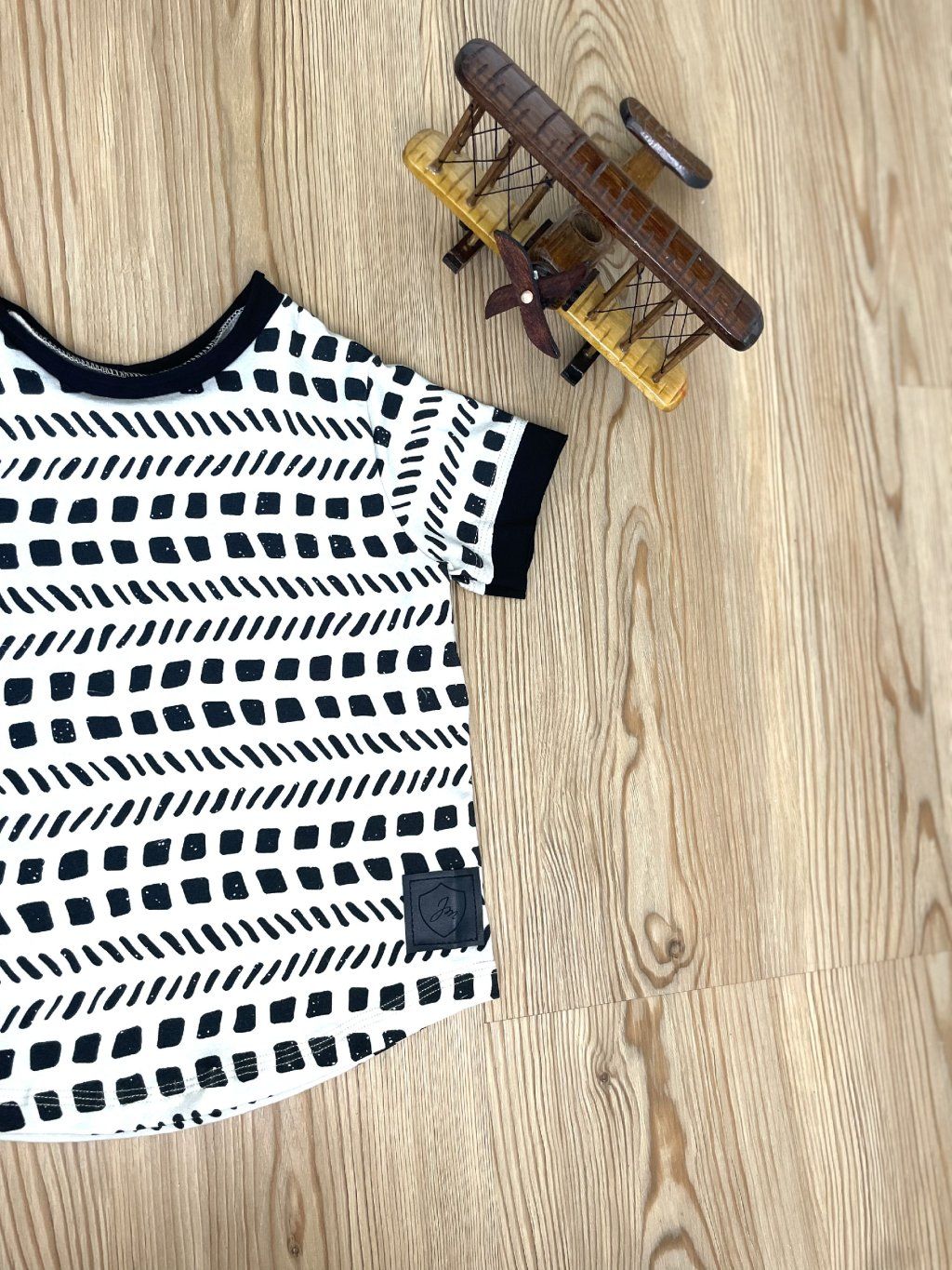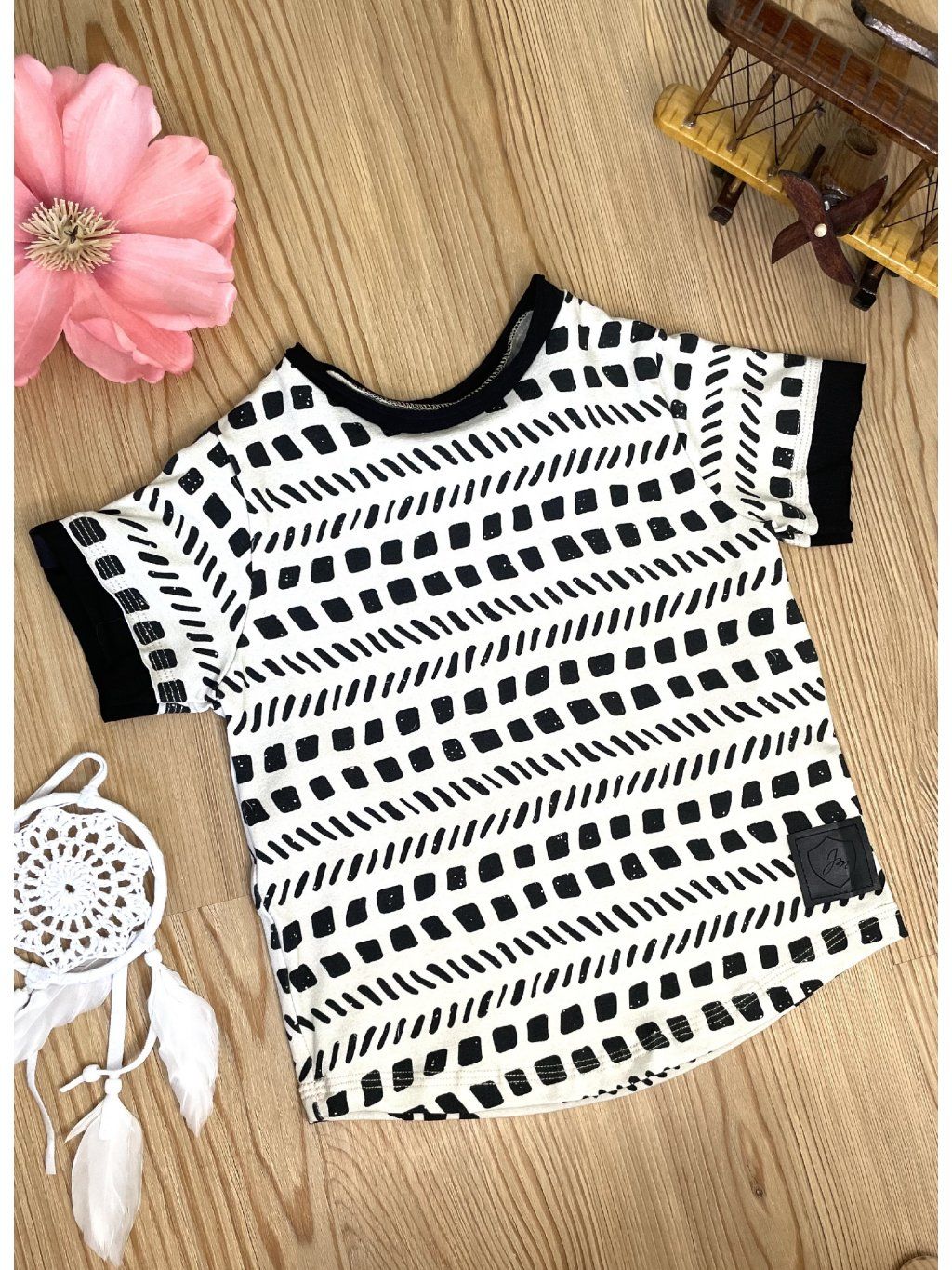 Tato chlapecká trička mají střih spíše volnější a širší než naše původní chlapecká trička - říkáme mu HIP HOP. VALHALLA má krátký rukáv zakončen černým, nezačištěným nápletkem. Okolo krku je tričko také zakončené černým nápletkem. Trička mají koženkovou nášivku.
