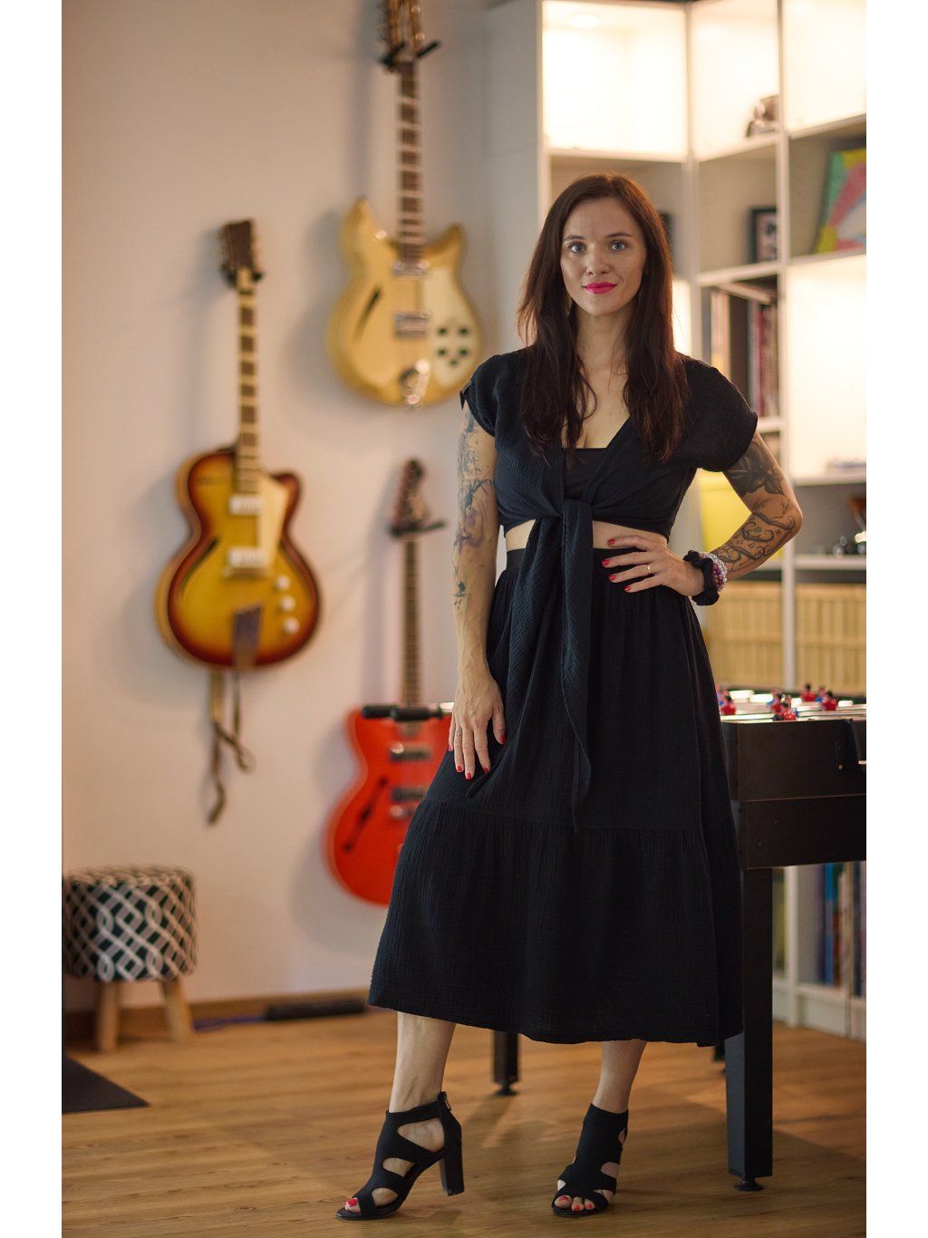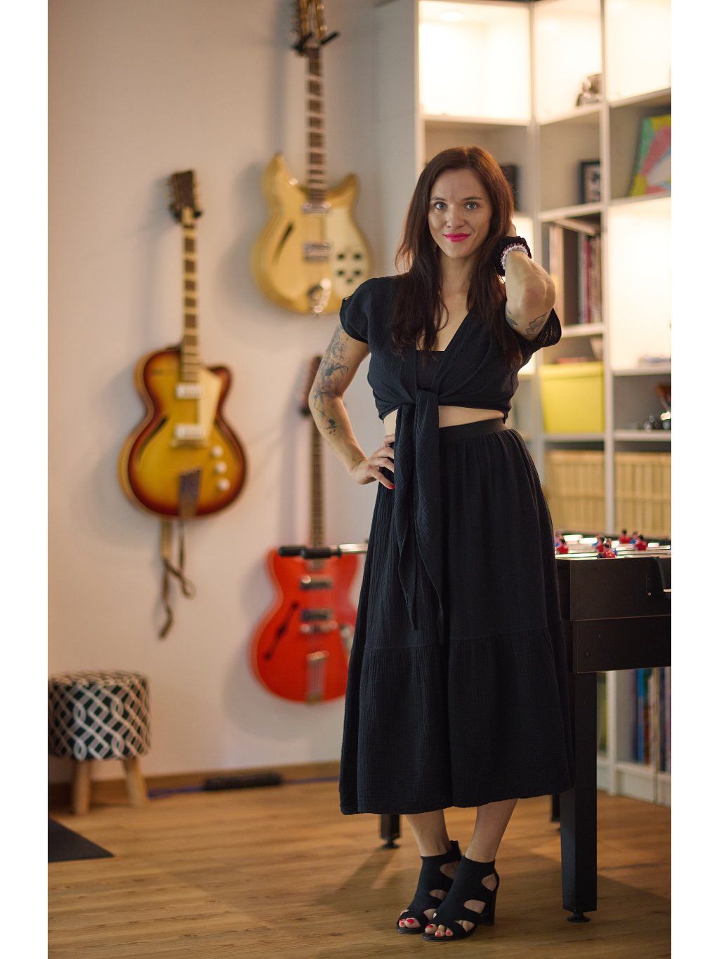 Sukně je dlouhá pod kolena. Sedí krásně.