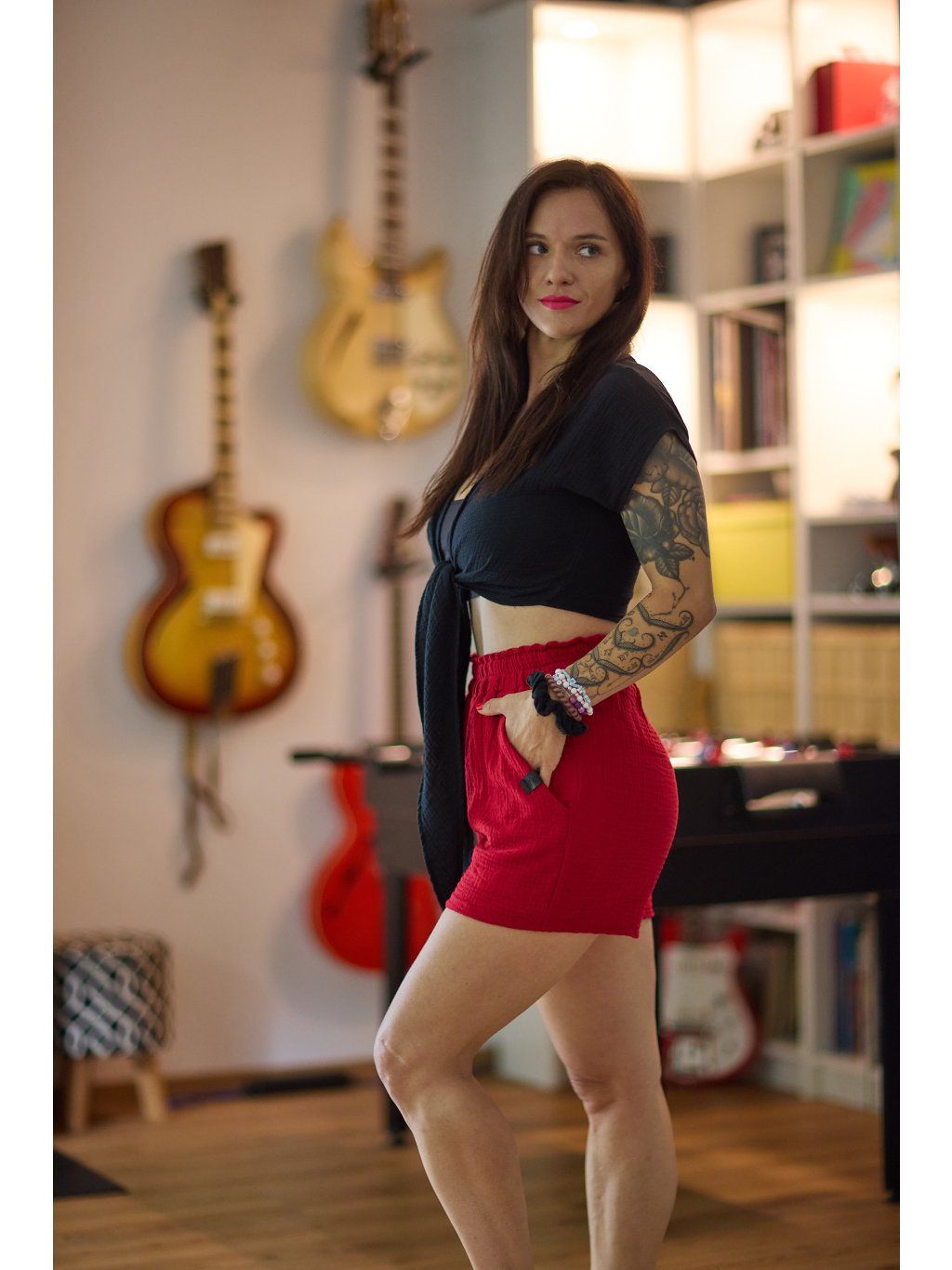 DÁMSKÉ Mušelínové Kraťasy MARILYN Karmin RED HIGH