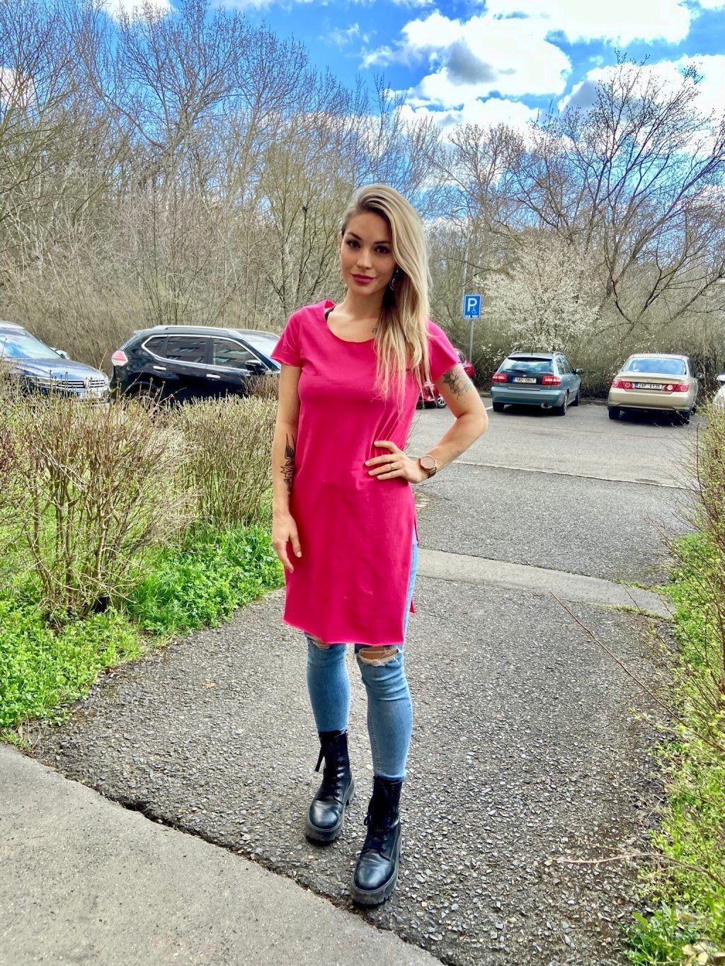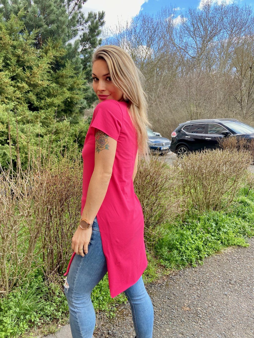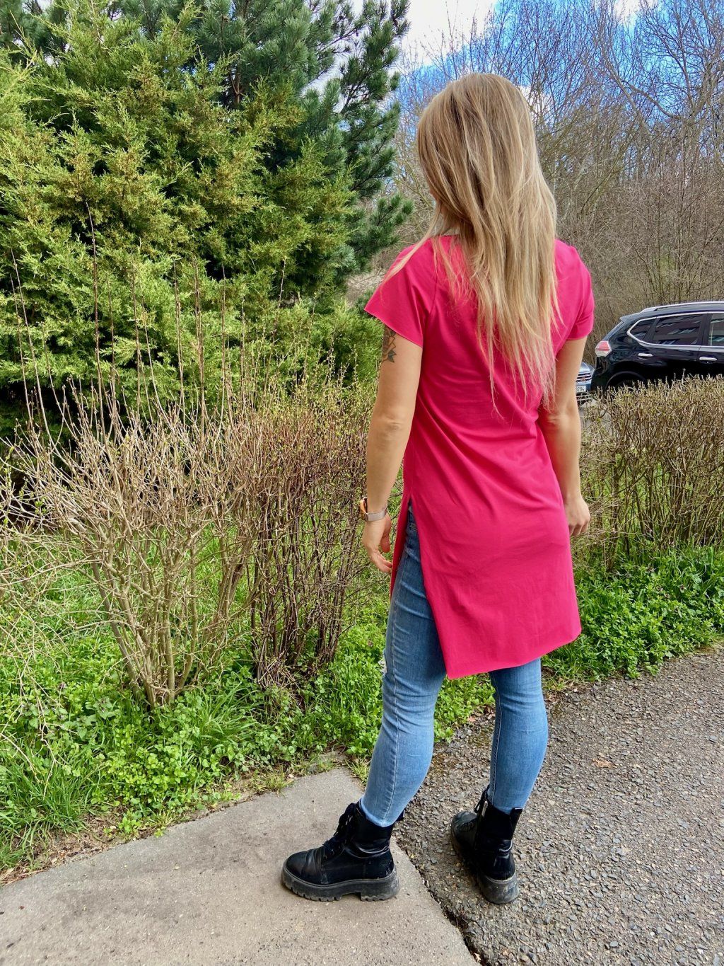 Naše DEPP  trička mají delší, pohodlný střih, hlubší výstřih a dva vysoké postranní rozparky. Tričko je na krajích nezačištěné. Materiál je slabší bavlněný úplet s elastanem.