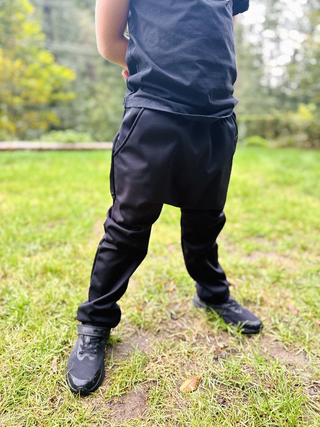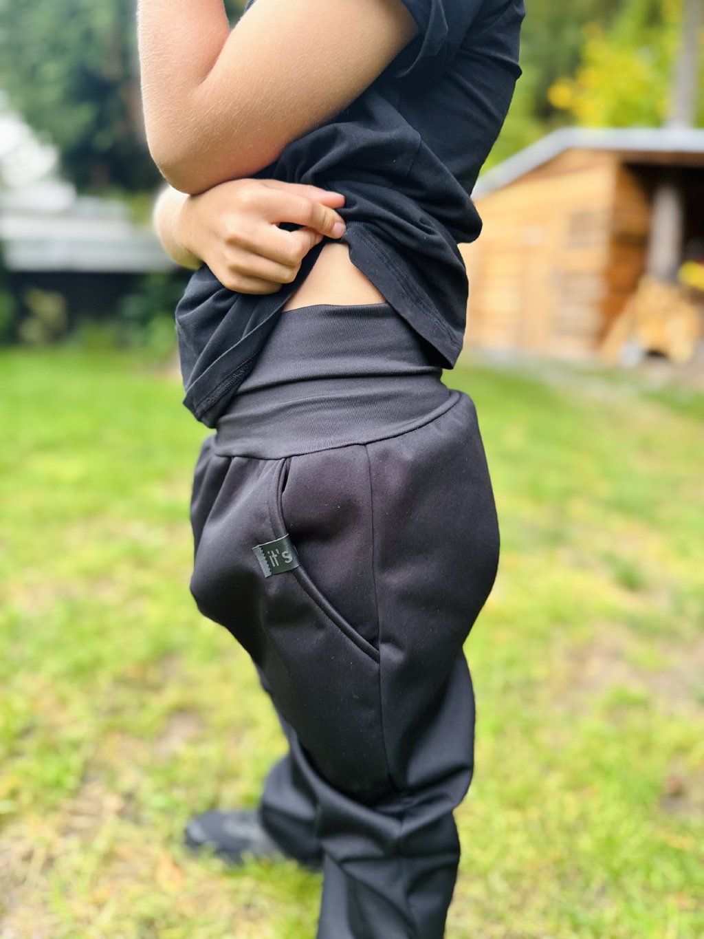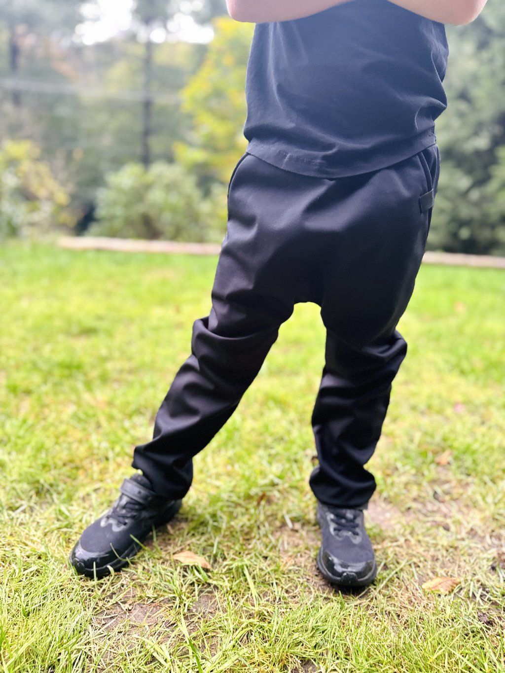 DĚTSKÉ ROSTOUCÍ SOFTSHELLOVÉ baggy s fleecem BASIC BLACK