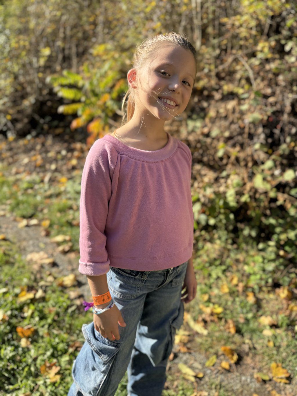 Krátká mikina se spadlým ramenem. Material je světle růžový jemný warmkeeper.