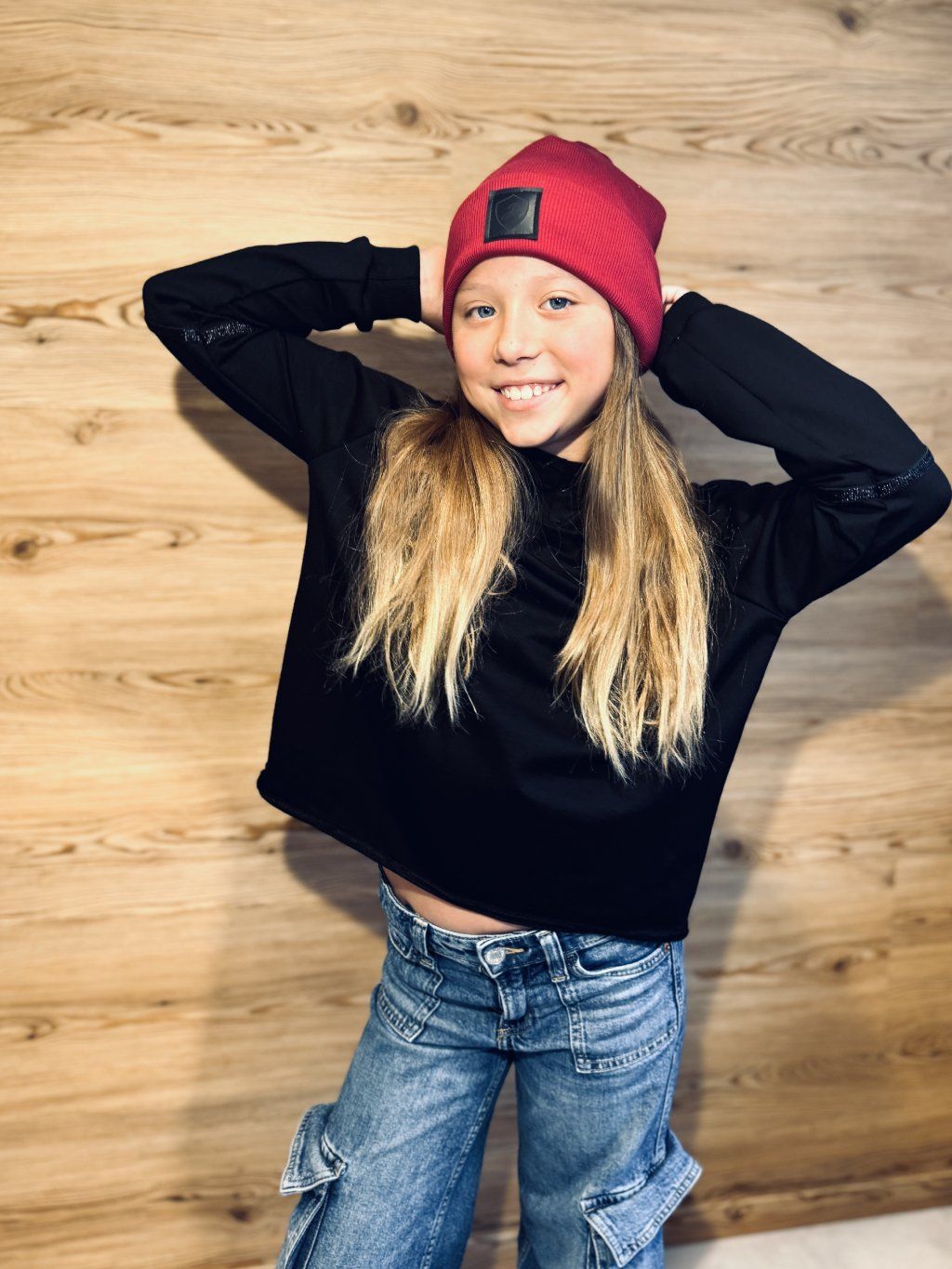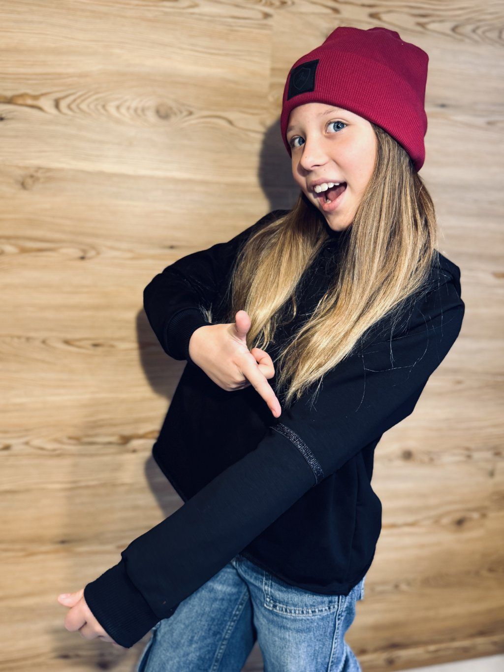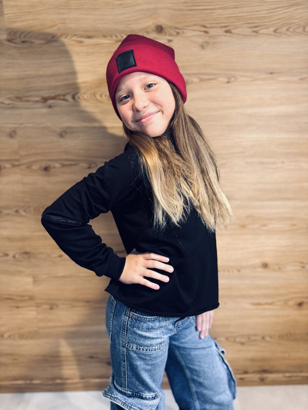 Dívčí CROP OVERSIZE mikina SHINY BLACK