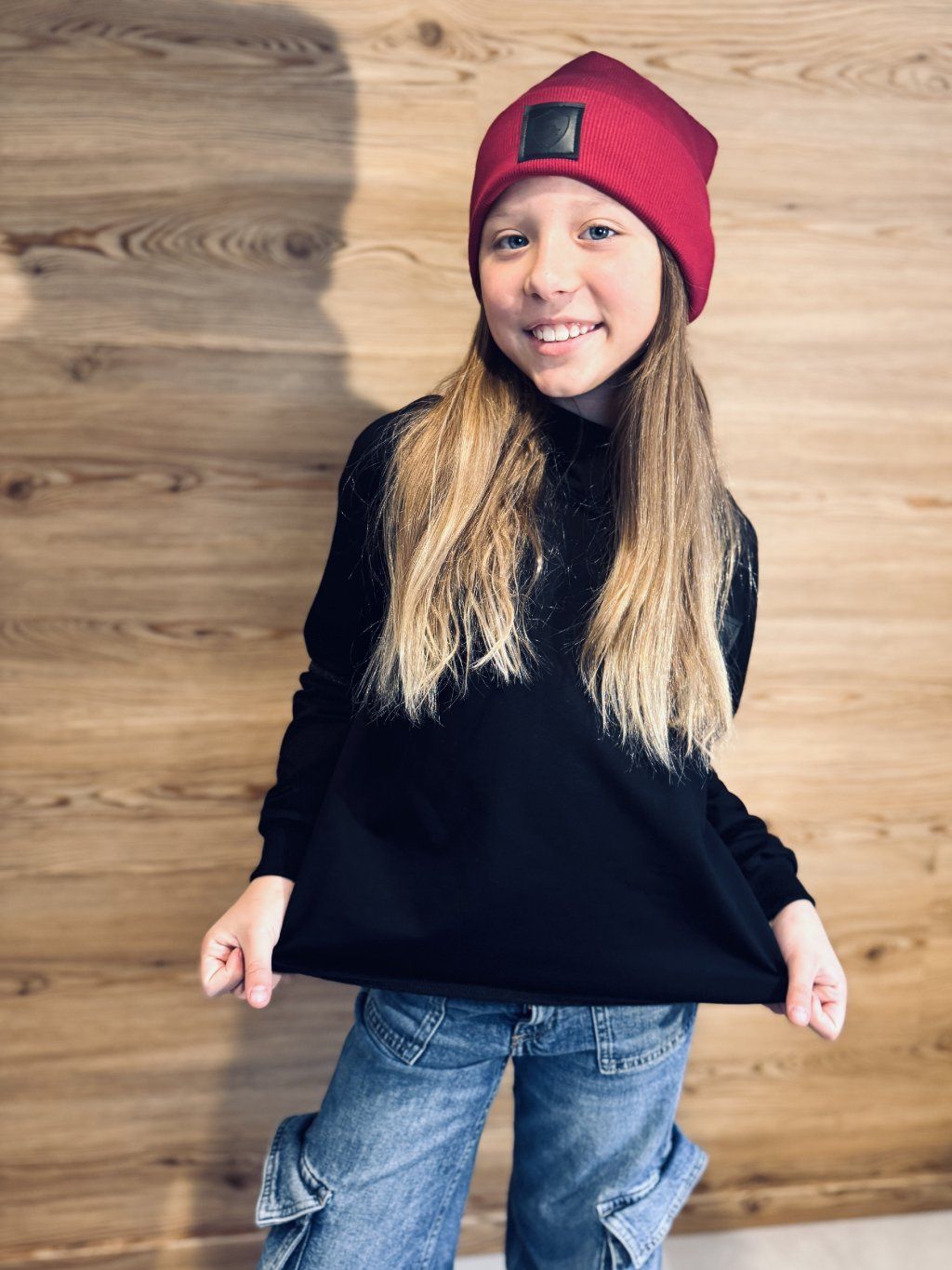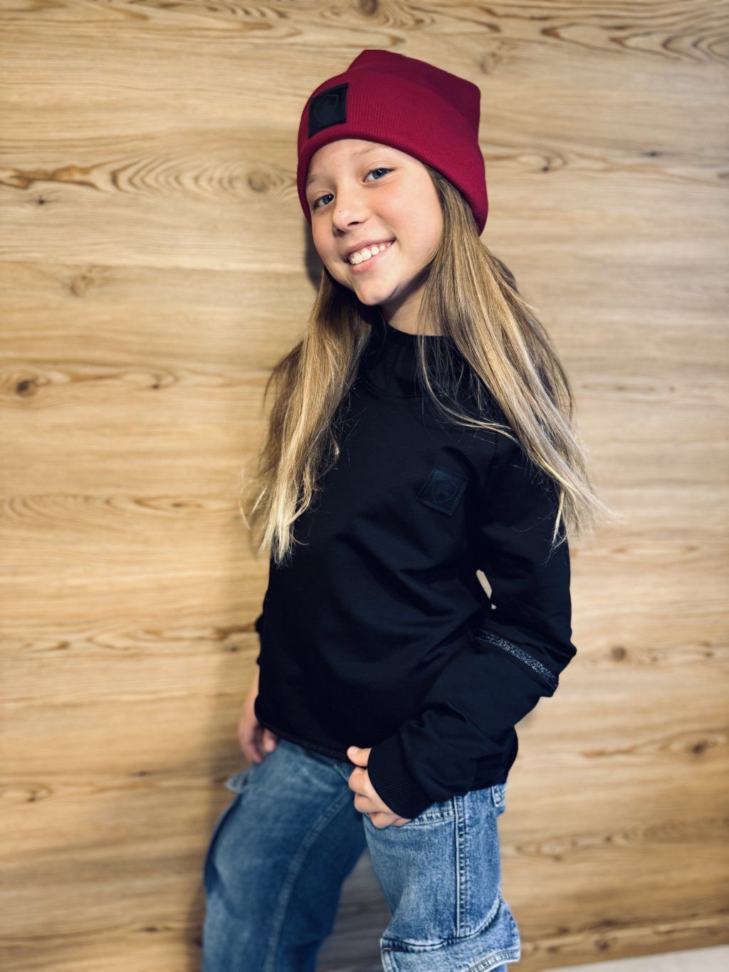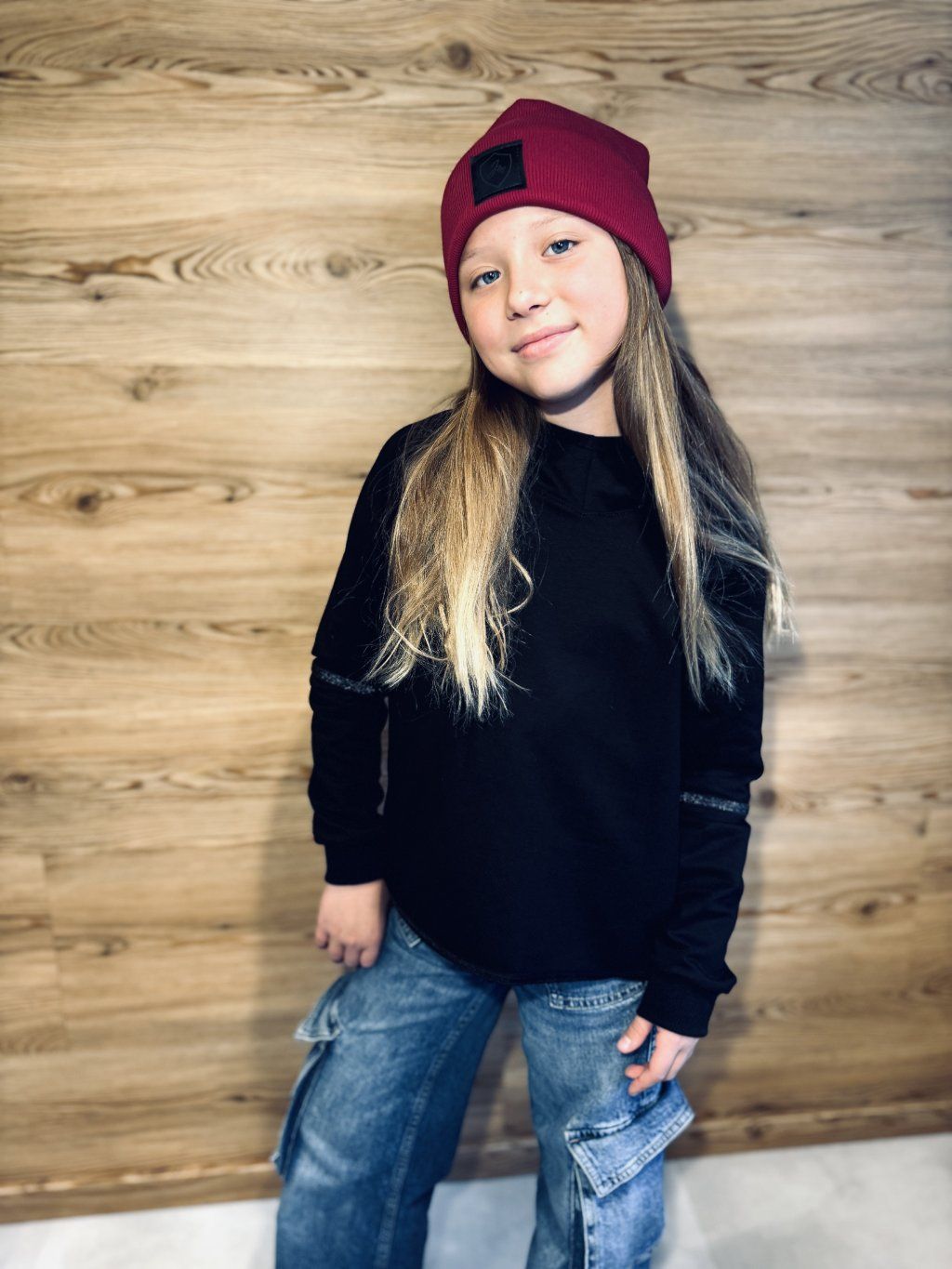 Mikina má volnější střih.