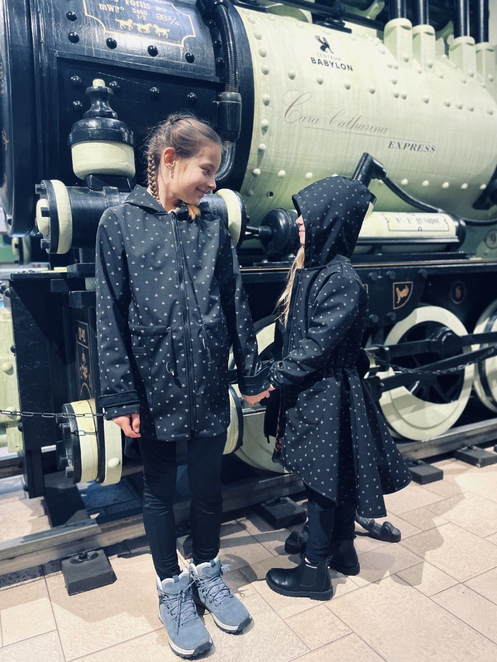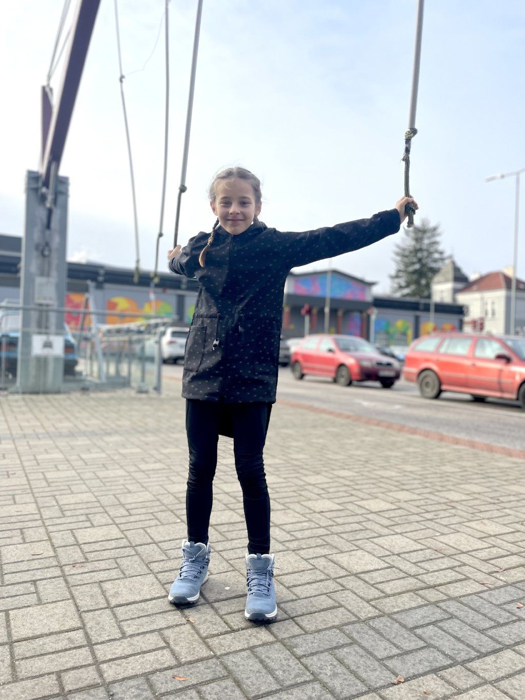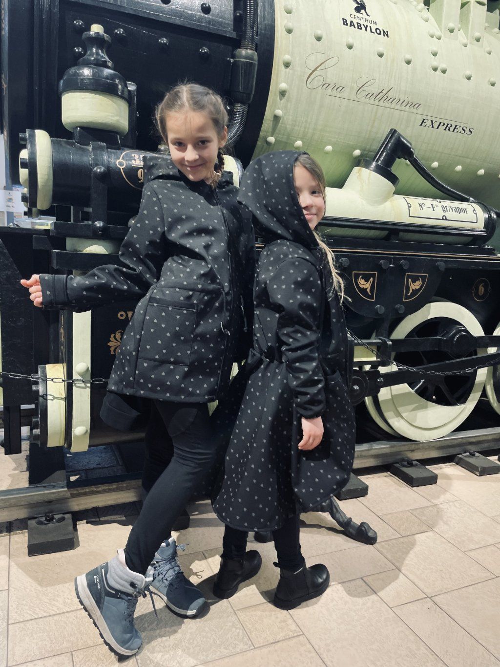 Softshellová bunda je ušitá z černého softshellu se silnějším fleecem, na sobě má potisk srdíček, které se po nasvícení lesknou. V pase má bunda tunýlek na stažení šňůrkou.