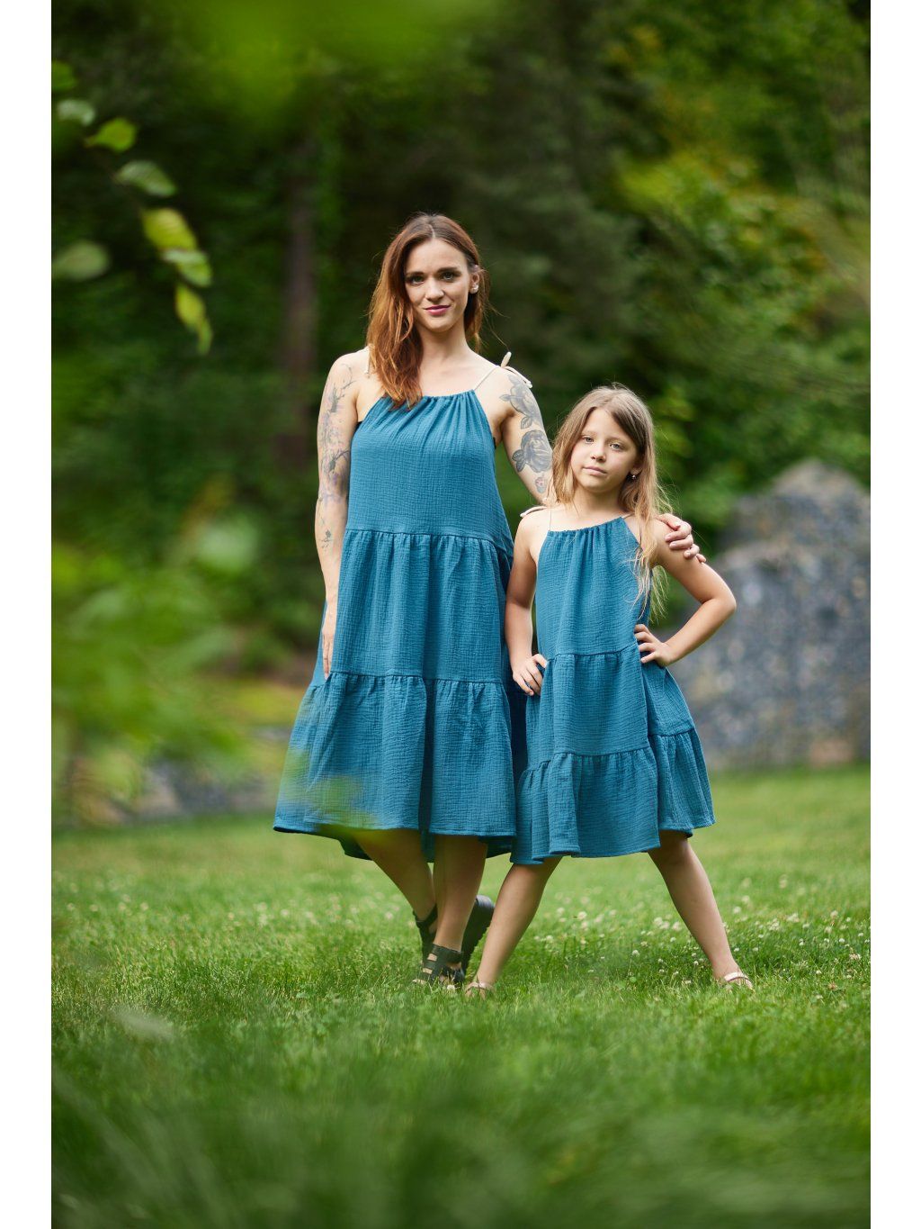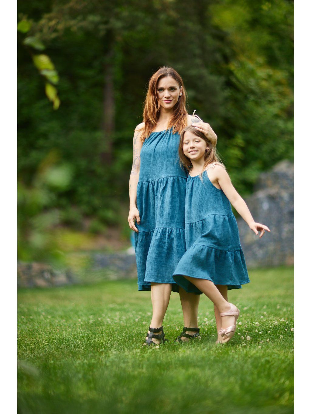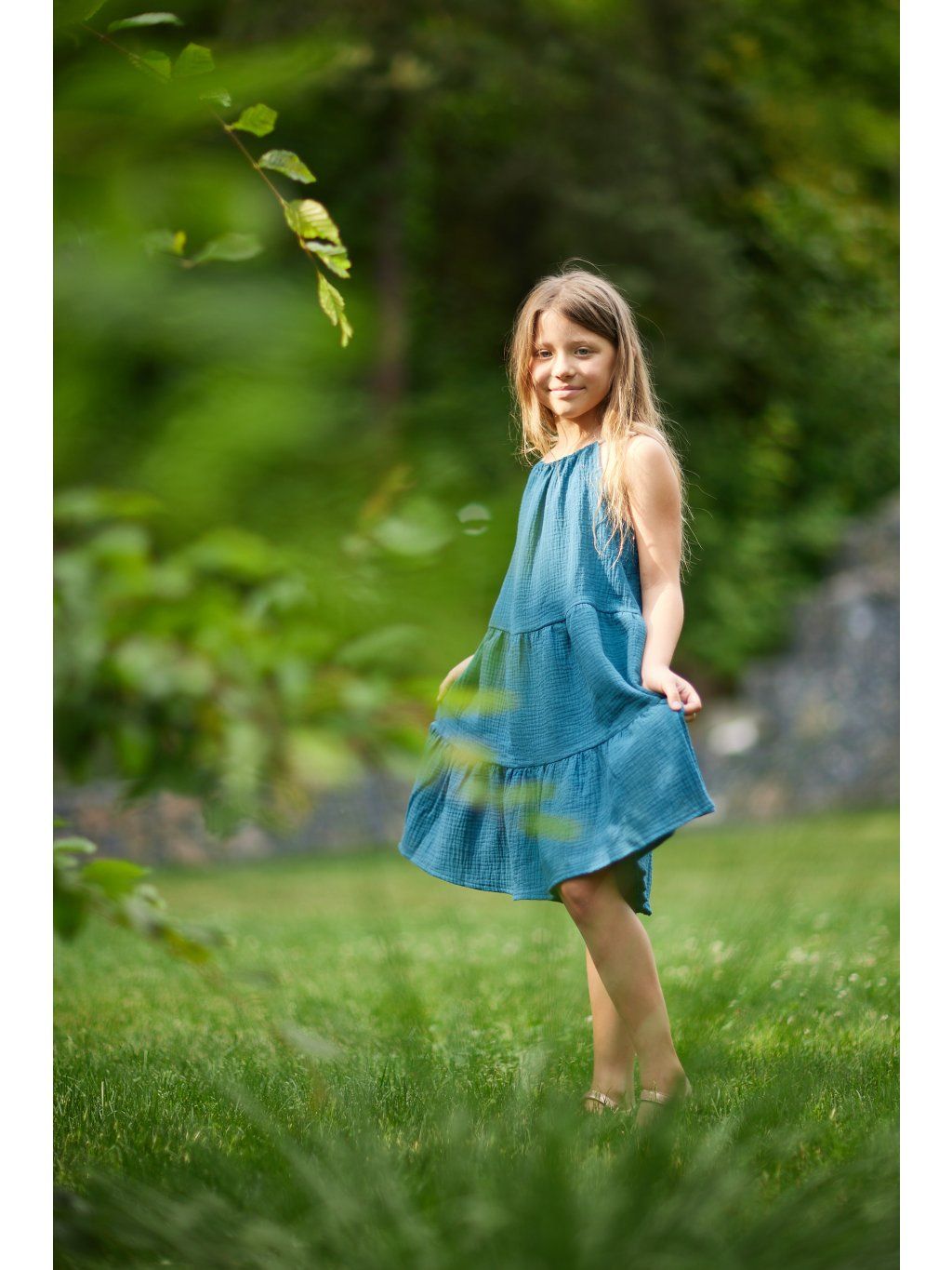 Šaty jsou ušité z prémiového mušelínu. Šaty mají dva bohaté volany.