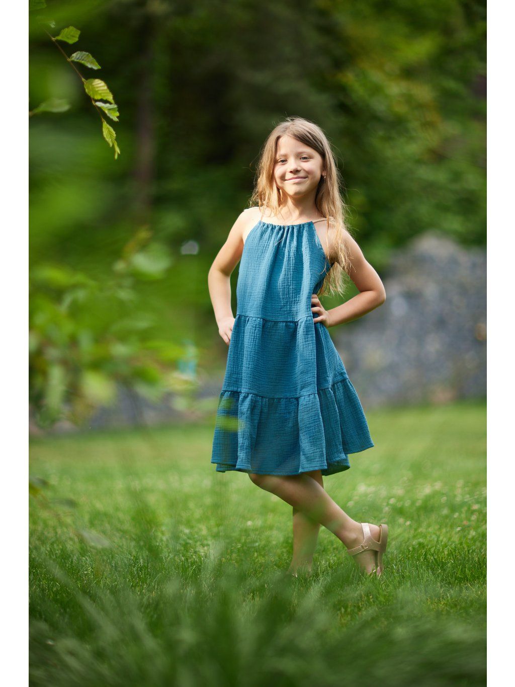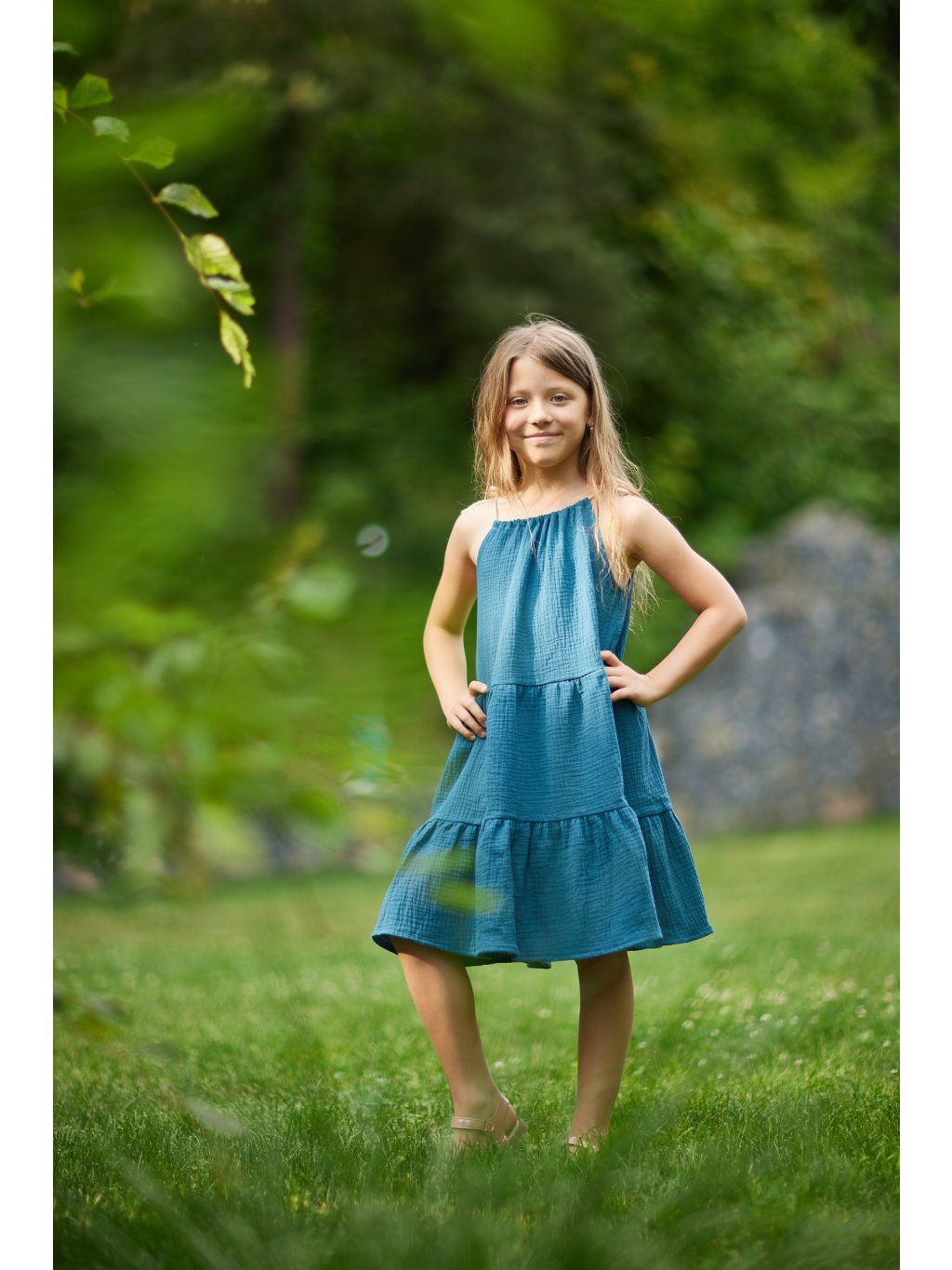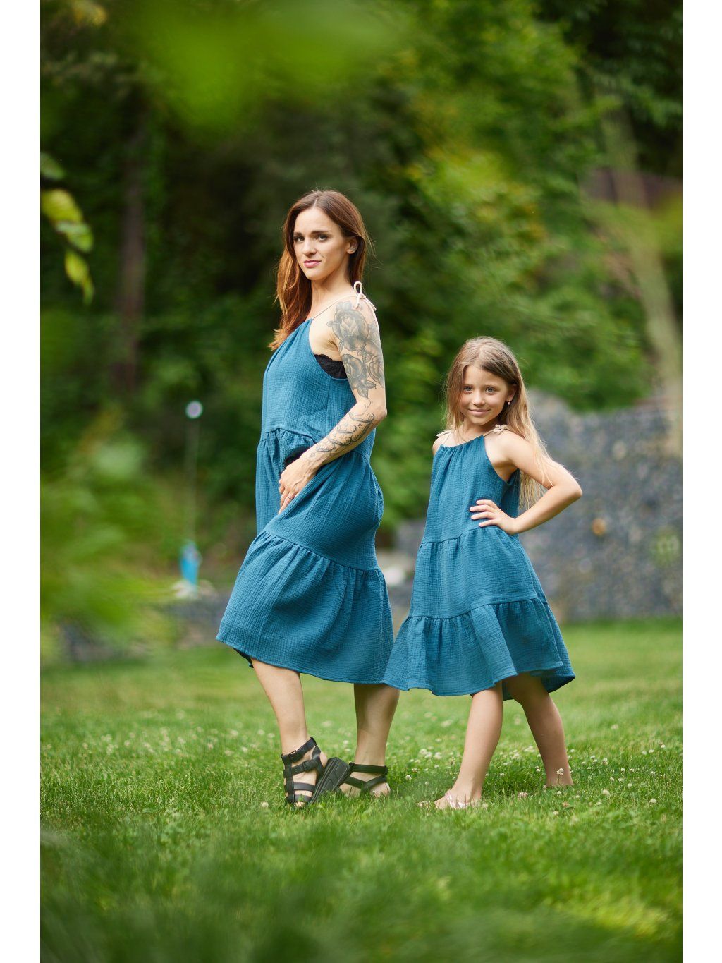 Šaty jsou ušité z prémiového mušelínu. Šaty mají dva bohaté volany.