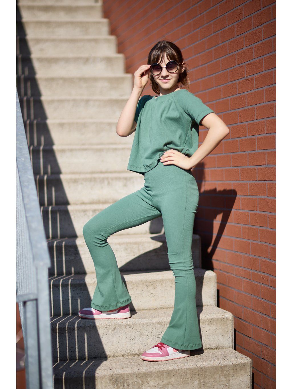 DÍVČÍ Žebrované zvonové kalhoty SATURDAY NIGHT FEVER Green