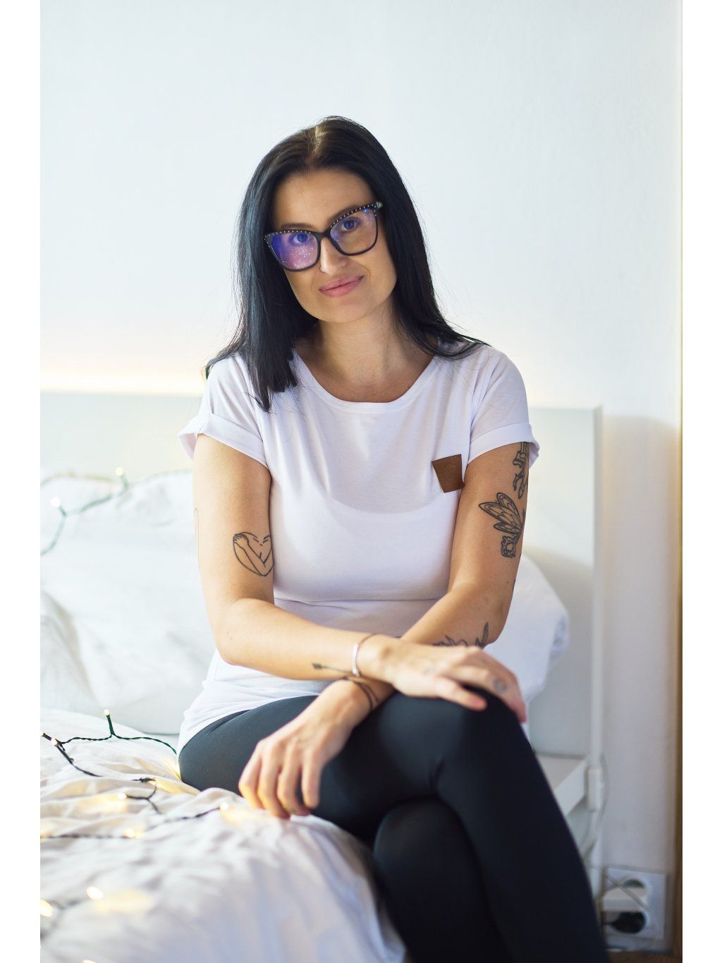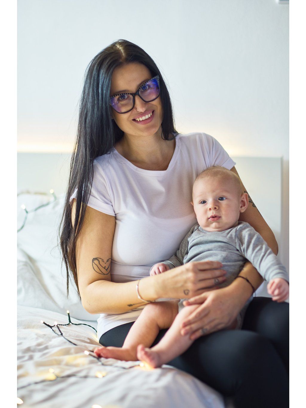 Kojící trička mají delší a pohodlný střih. Materiál je slabší úplet bavlna/elastan. Stačí odhrnout vrchní díl, pod kterým je hlubší výstřih, a vy tak můžete pohodlně a diskrétně nakojit. Horní díl je originálně střižený našikmo.