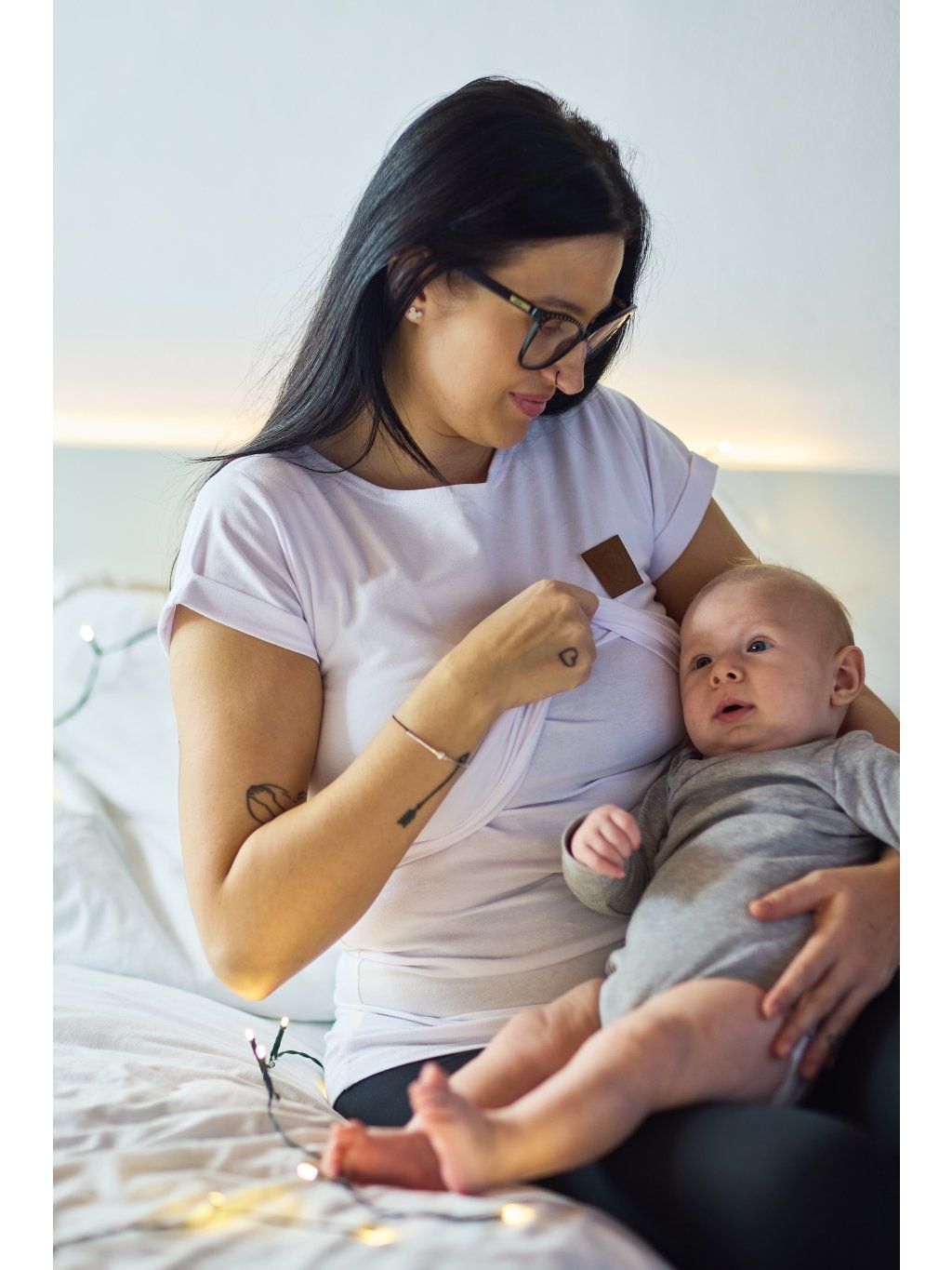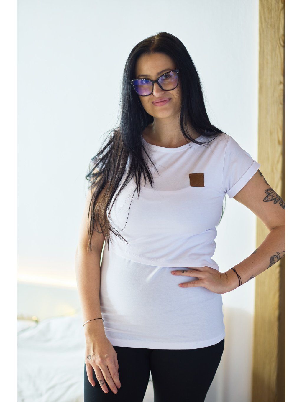 Kojící tričko WHITE (krátký rukáv/s nášivkou) - Maminka