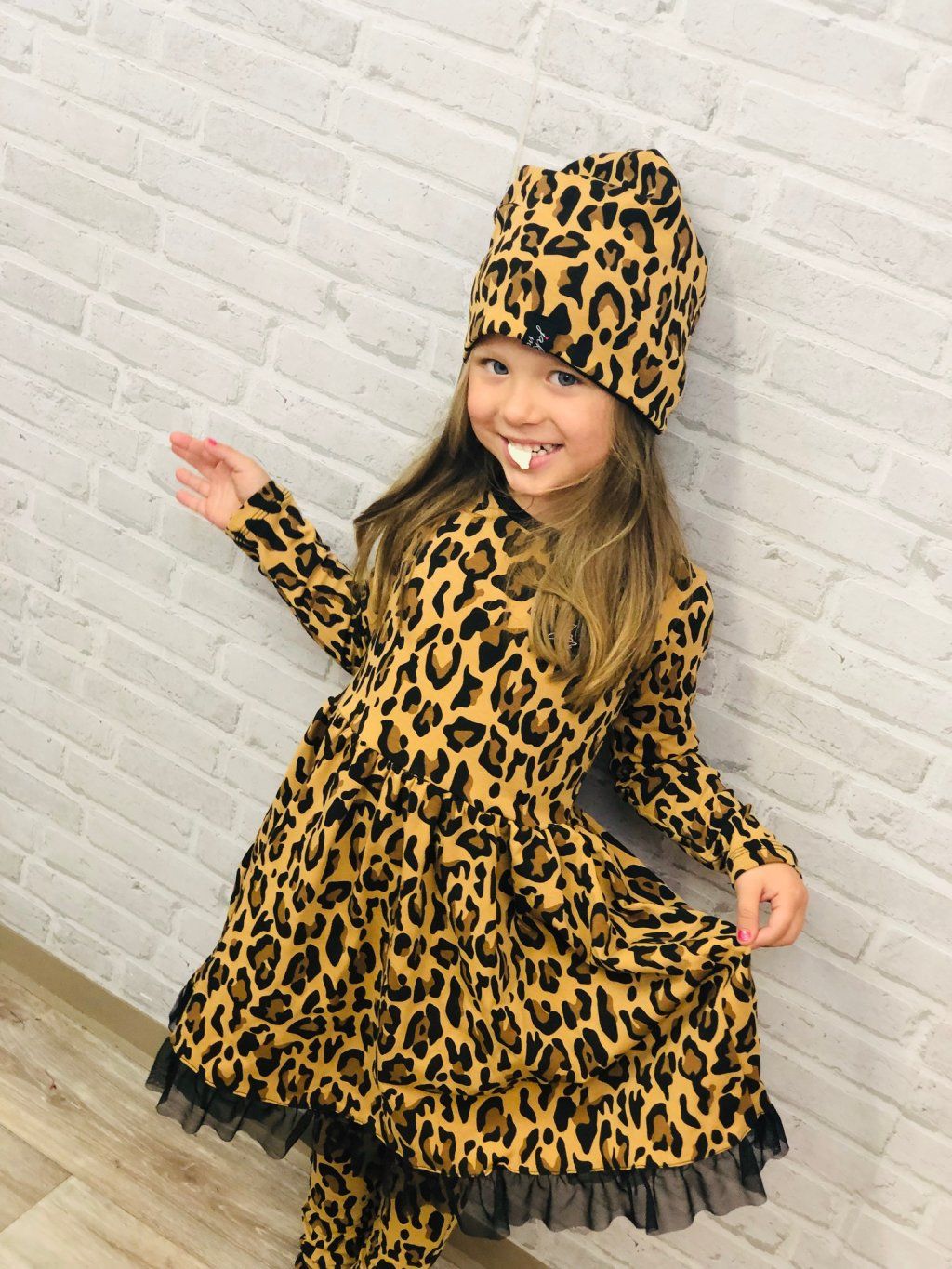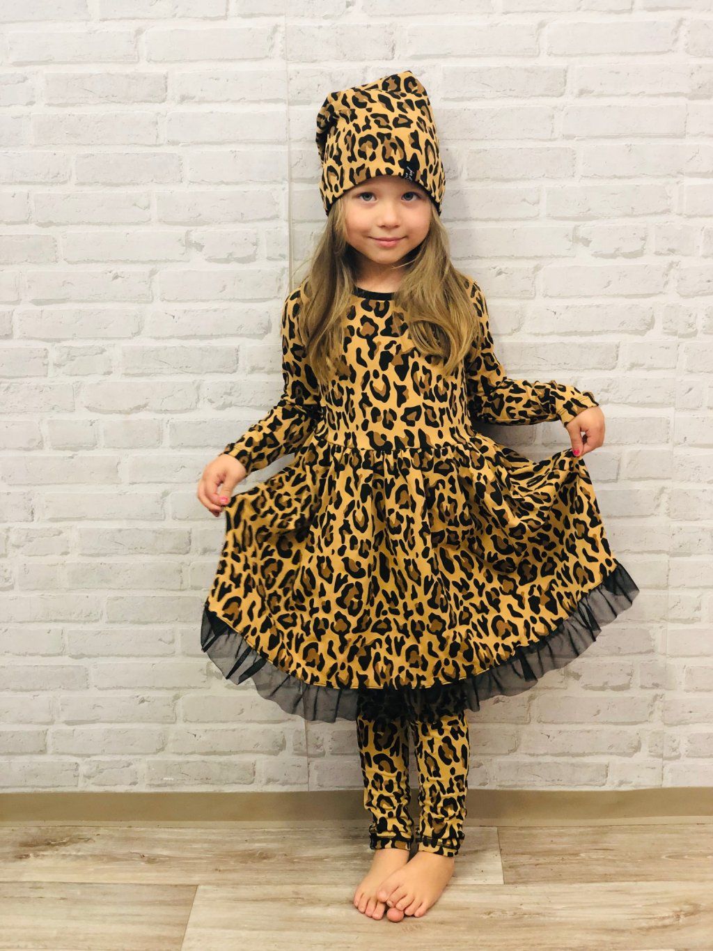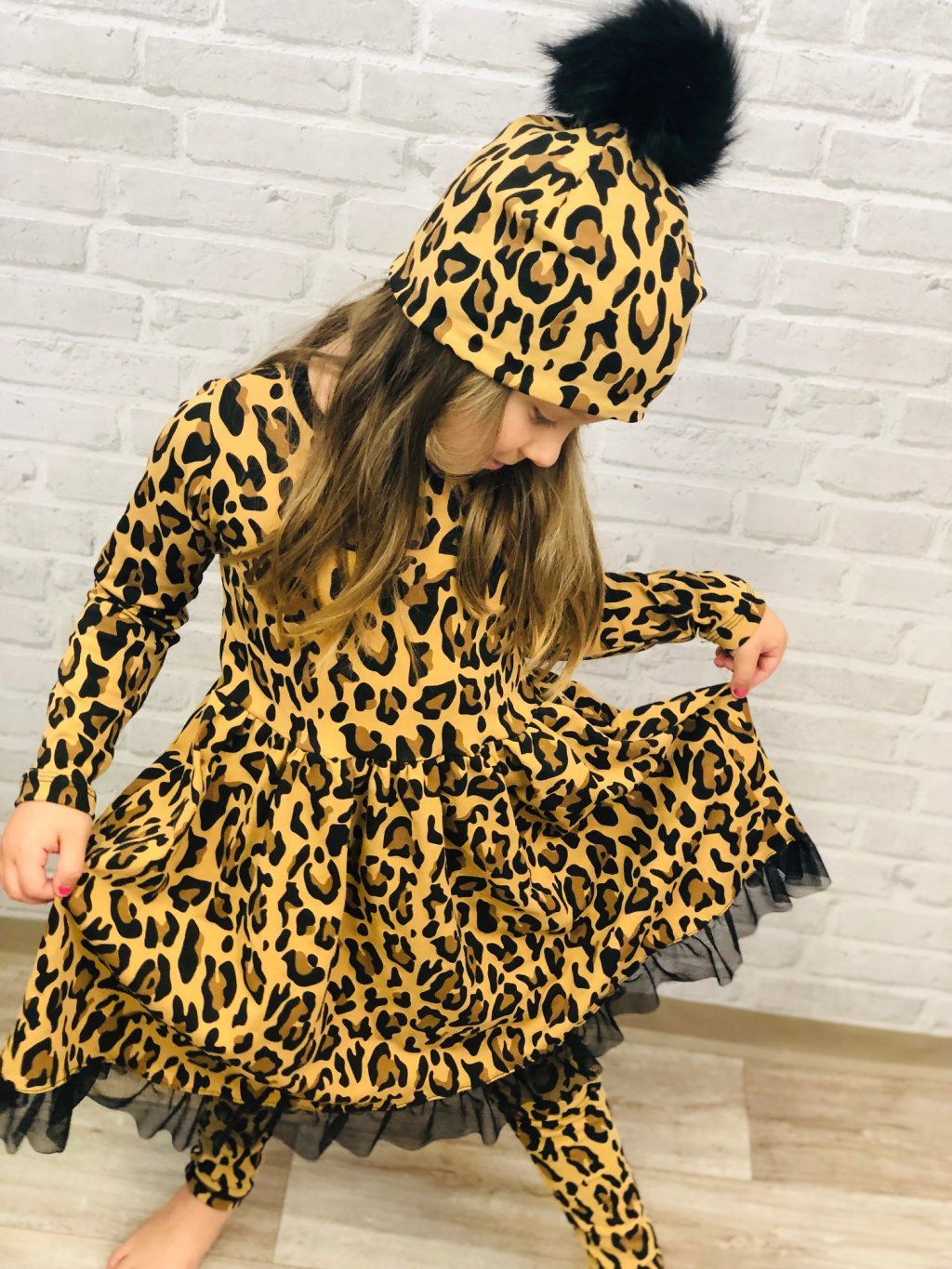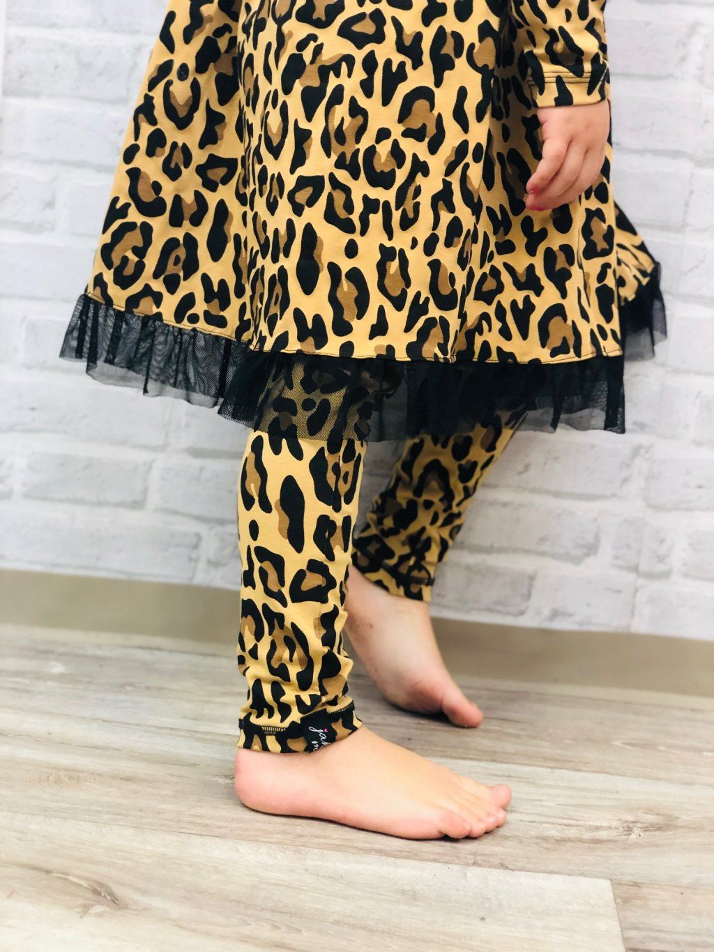 Legíny z příjemného úpletu s gepardím potiskem. Materiál: ÚPLET. 92% bavlna 8% elastan Vyrobeno v ČR Celá kolekce je ušitá z materiálů, které mají certifikaci OEKO-TEX STANDARD 100 a jsou vhodné pro děti do 3 let. Tabulka velikostí: Připravuje se