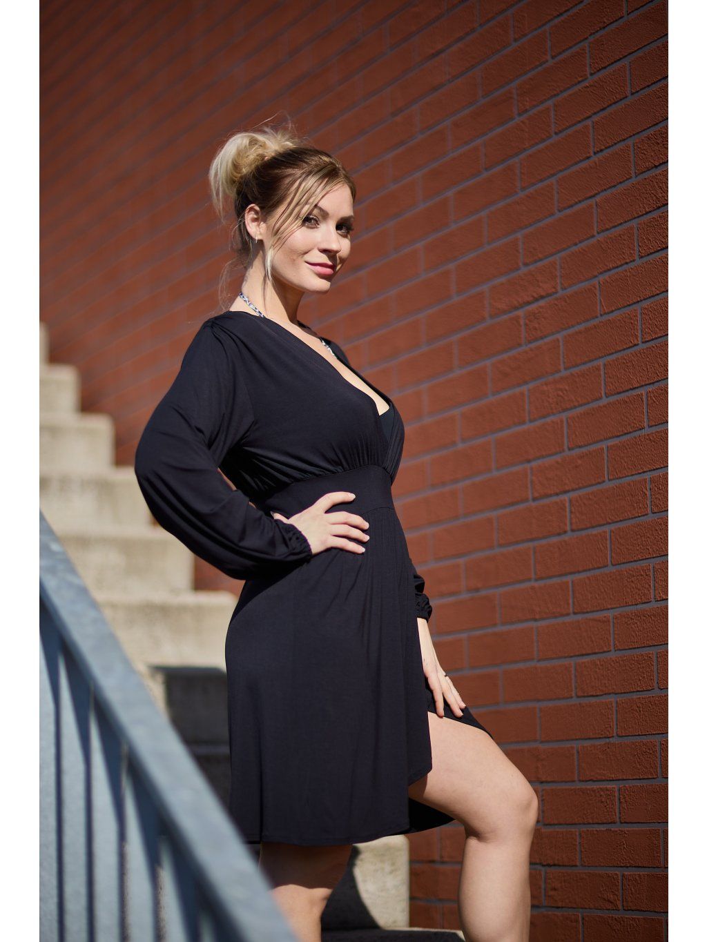Modelka měří 165 cm a má na sobě velikost S.