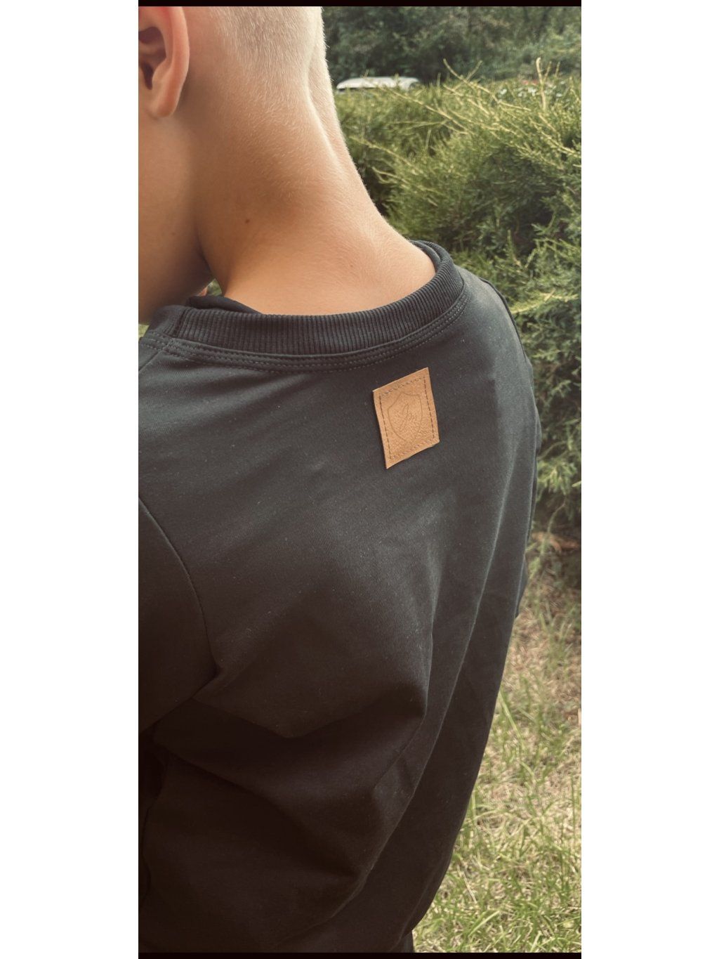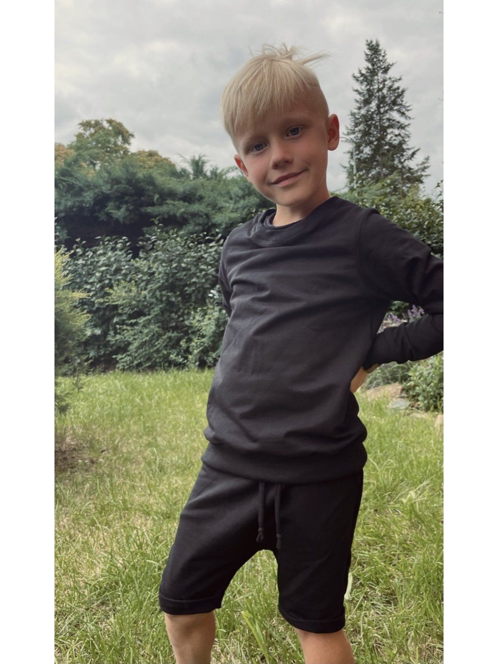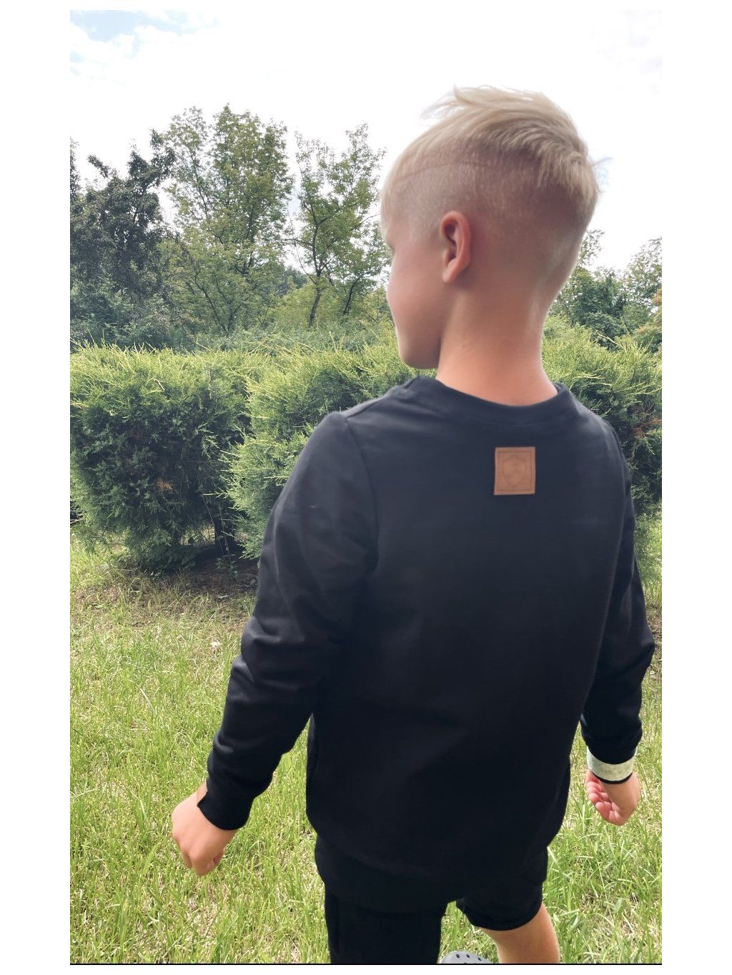 Mikina je ušitá z teplákoviny bavlna/elastan v černé barvě a má černé žebrované náplety.