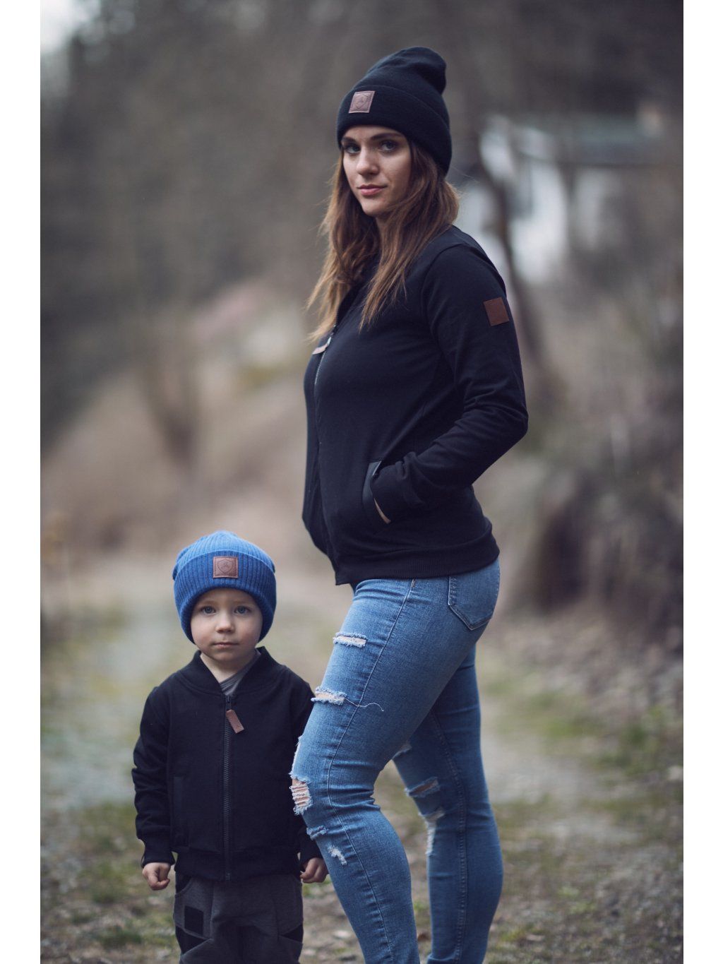 Podzimní / jarní mikina ve stylu bomberu. Ušita z černé počesané teplákoviny bavlna s elastanem v kombinaci s černou koženkou na kapsách. Mikina má zapínaní na zip..