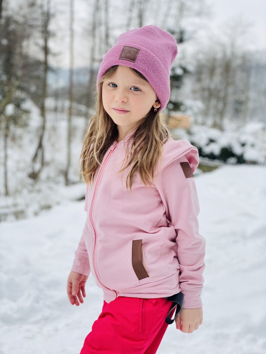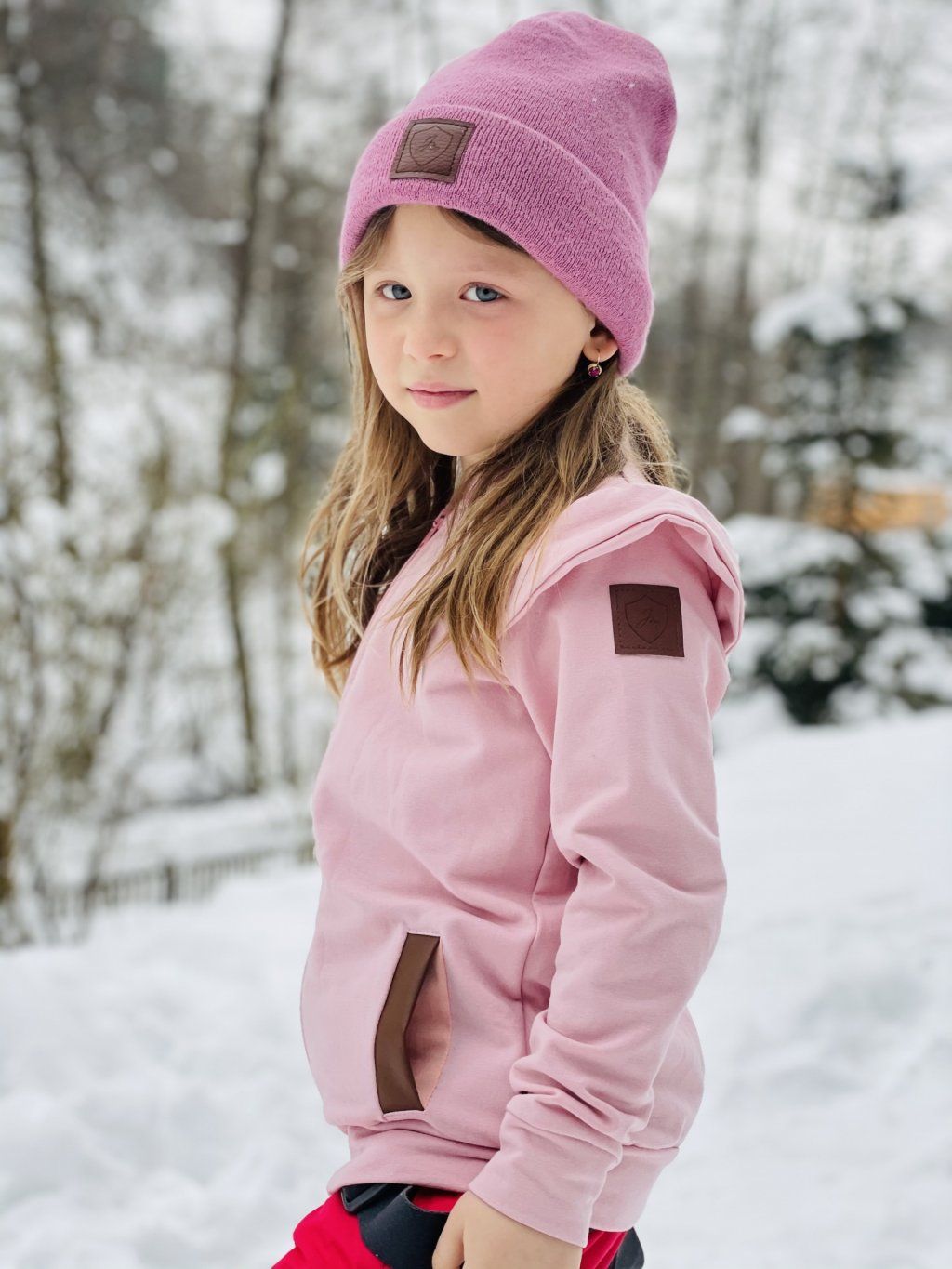 Podzimní / jarní mikina ve stylu bomberu. Ušita z růžové počesané teplákoviny s elastanem v kombinaci s hnědou koženkou. Mikina má zapínaní na zip.