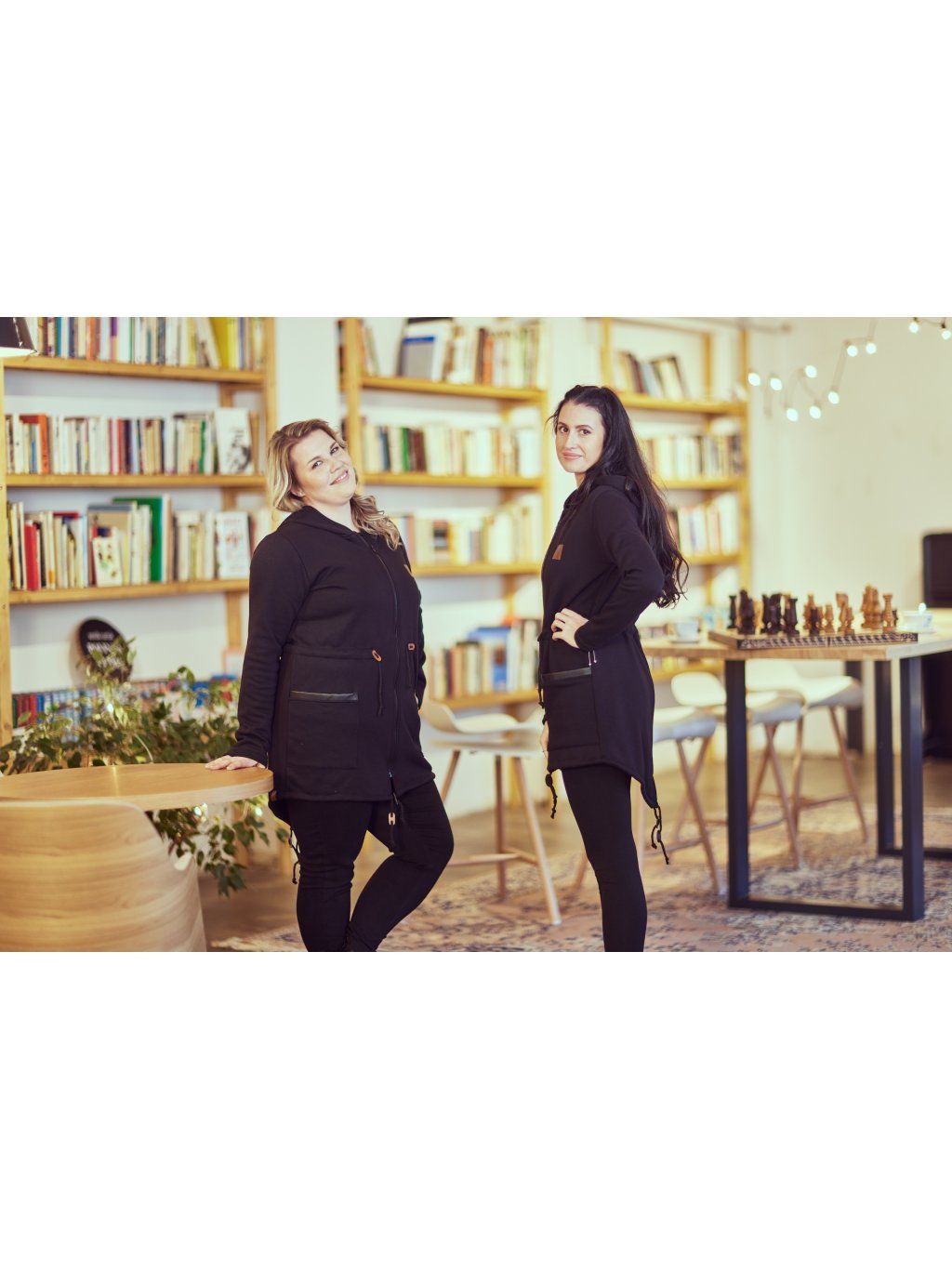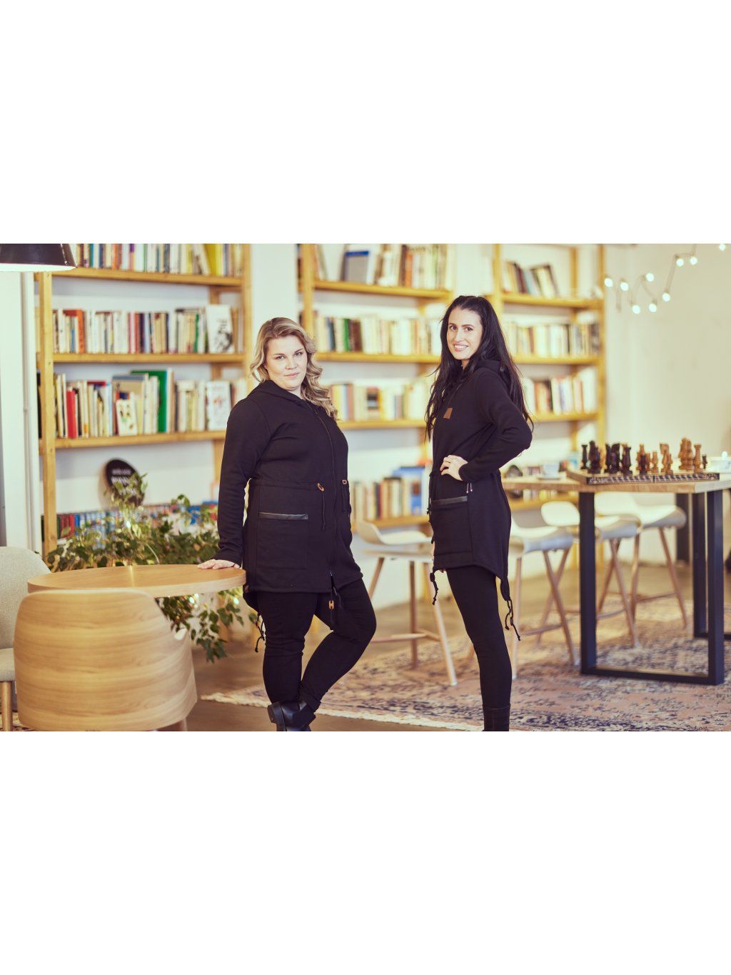 Stylová dlouhá mikina má spíše volnější střih, je ušita z černého warmkeeperu. Mikina je na zip, vpředu má kapsy lemované černou koženkou. Střih je delší a v pase má tunýlek. Mikina má na zádech ozdobný trojúhelník z černé koženky.