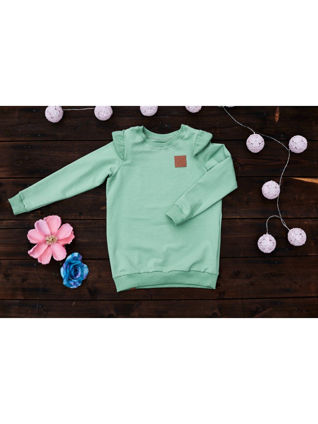 Mikina v mentolové barvě. Je ušita z příjemné teplákoviny bavlna/elastan.