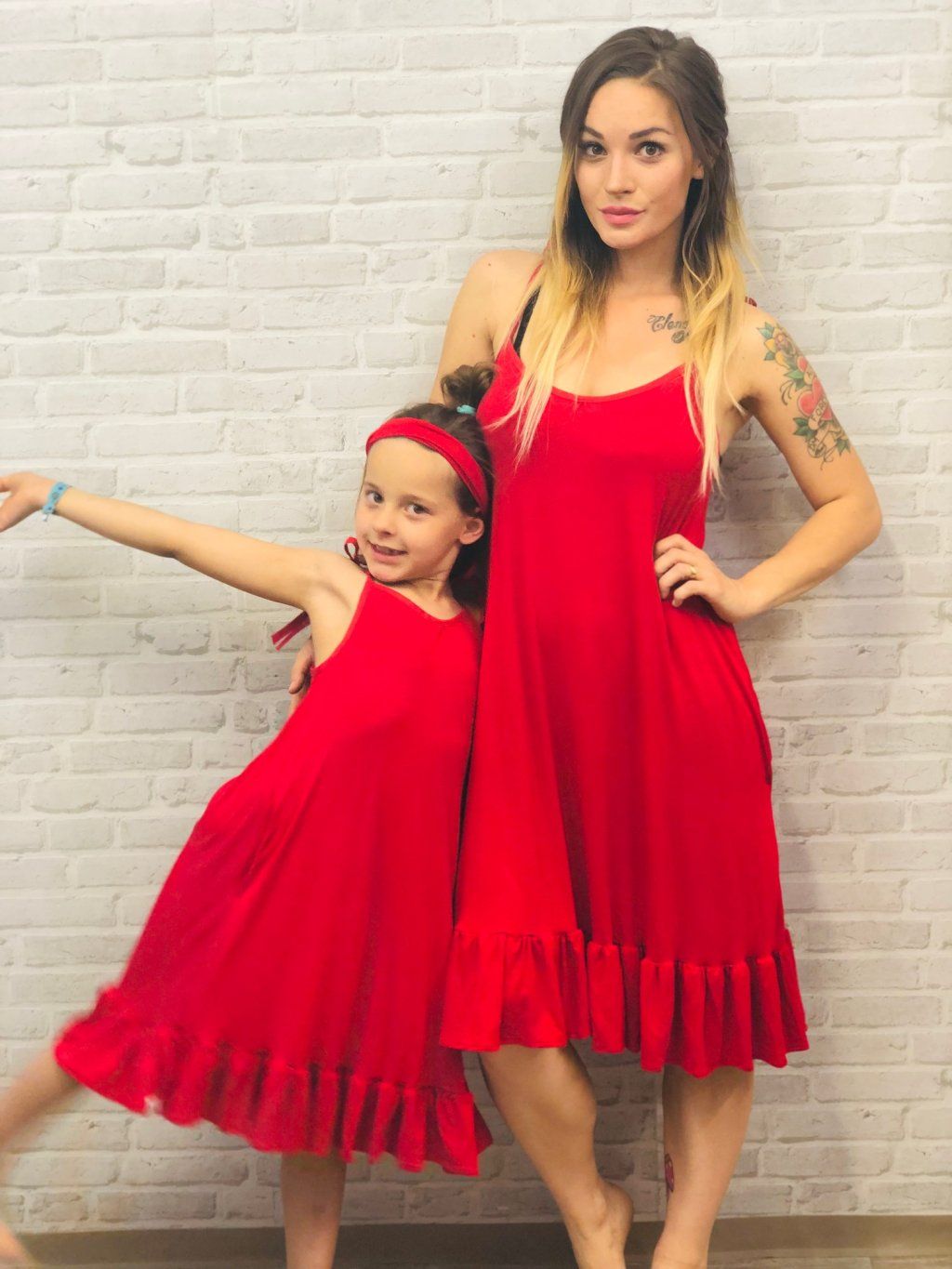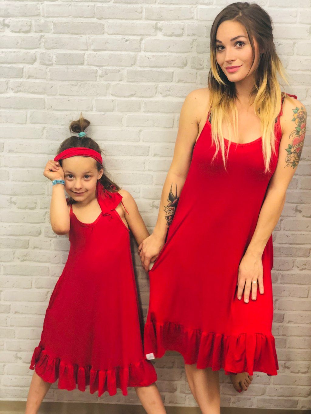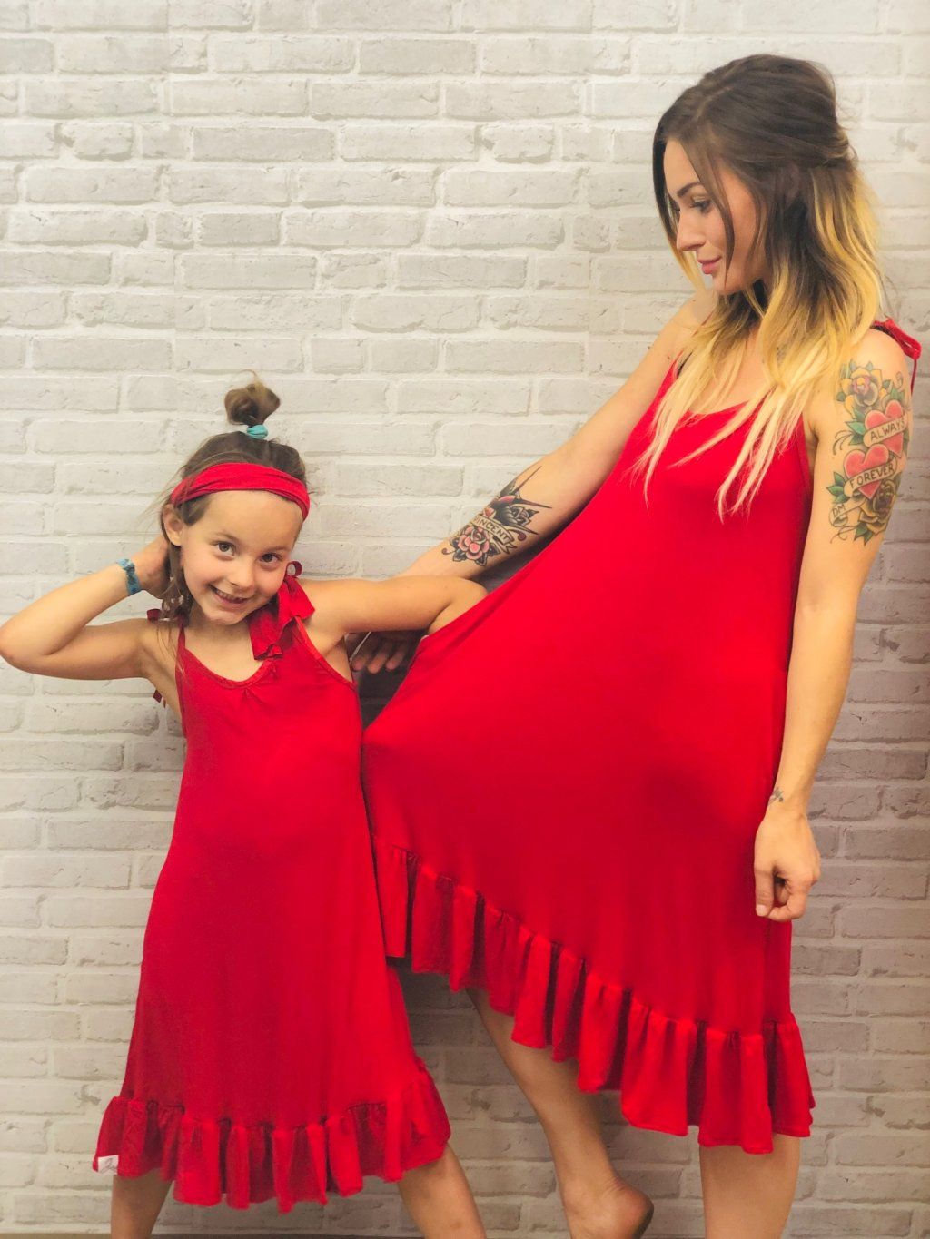 Šaty karkulkaa - Holčička Šatičky jsou spíše delší, neberte proto záměrně větší velikost :) Pohodlné lehoučké viskózové letní šaty na ramínka pro Maminku a Holčičku. Šaty mají v bočních švech kapsy a jejich materiál si zamilujete.Vyrobeno v ČR.