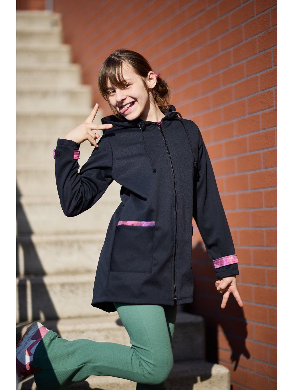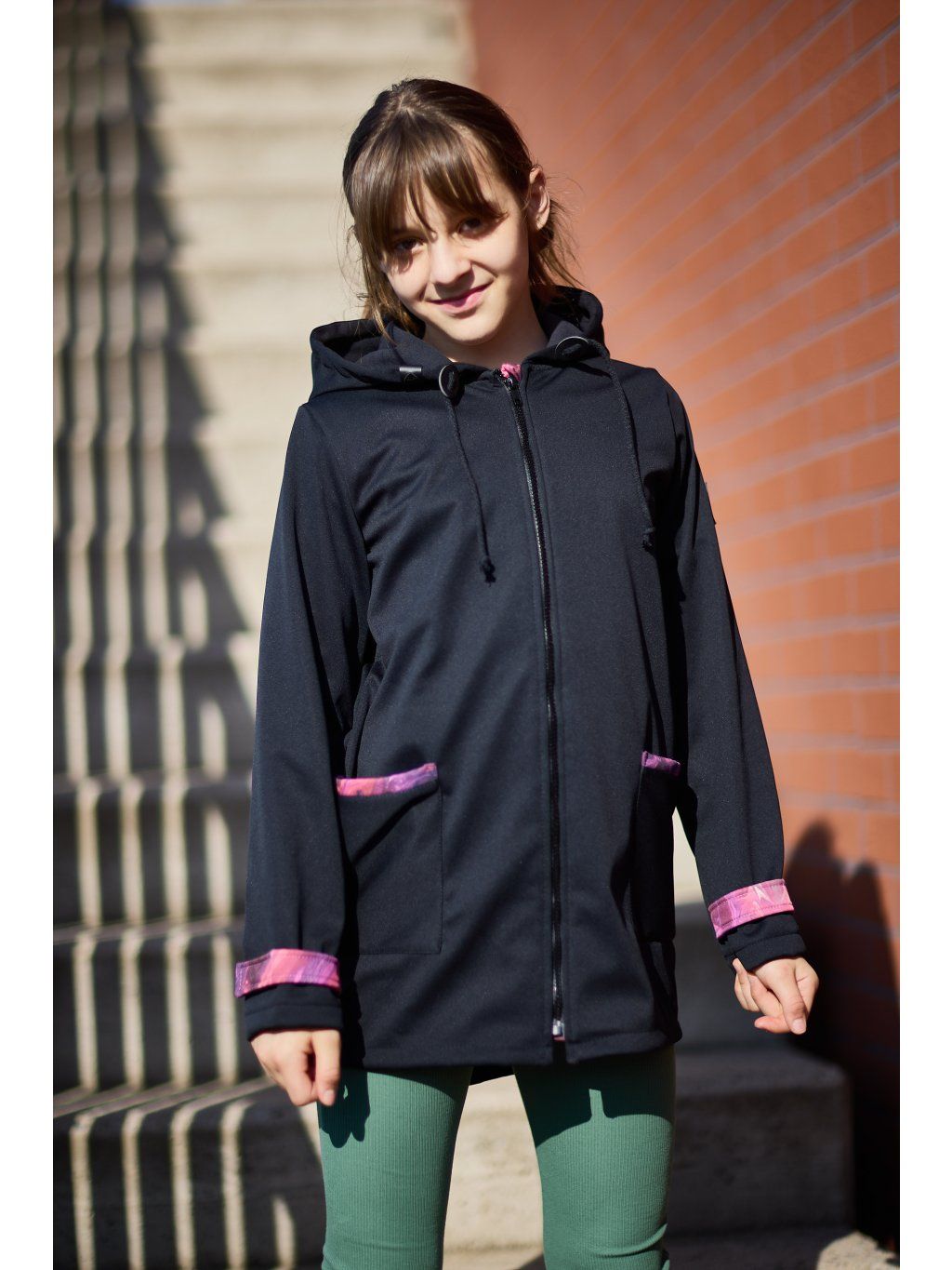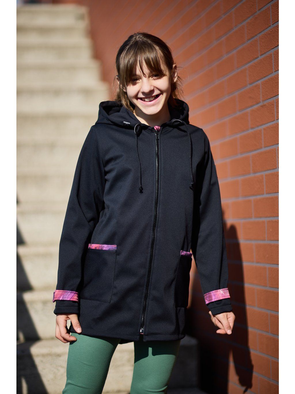 DÍVČÍ Softshell bunda s fleecem Black AKVAREL s pruhem na zádech