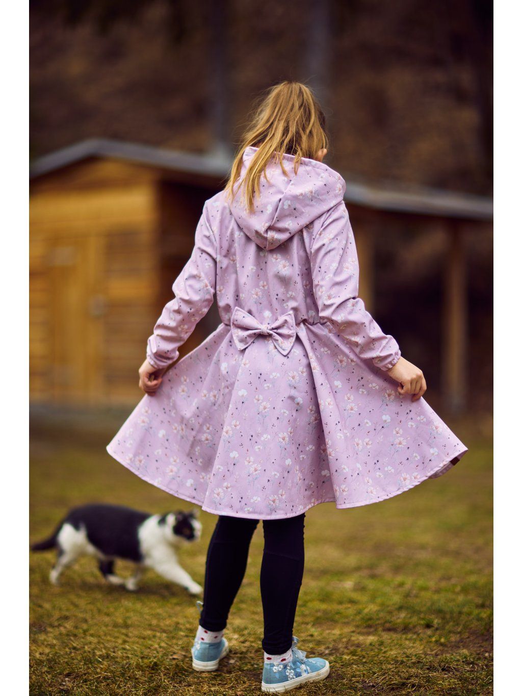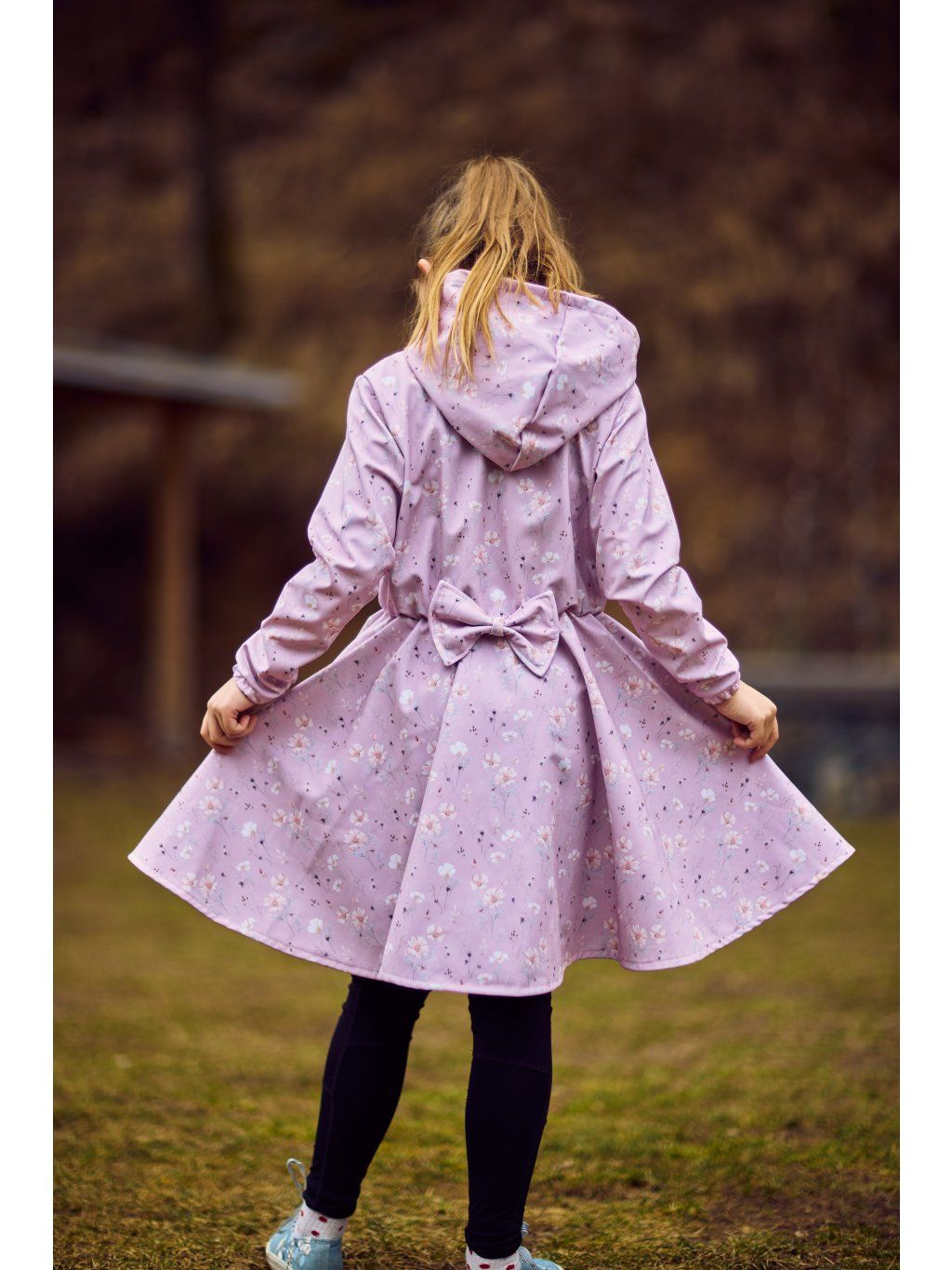 Má okrasnou nabíranou sukni a vzadu barevnou mašli. Vpředu je na zip do sportovnějšího stylu s roztomilými kapsami. Barva je světlejší růžová v kombinaci s barevným softshellem. Kabátek se dá nosit na jaře (přes tričko), na podzim, s teplejšími vrstvami i v zimě.