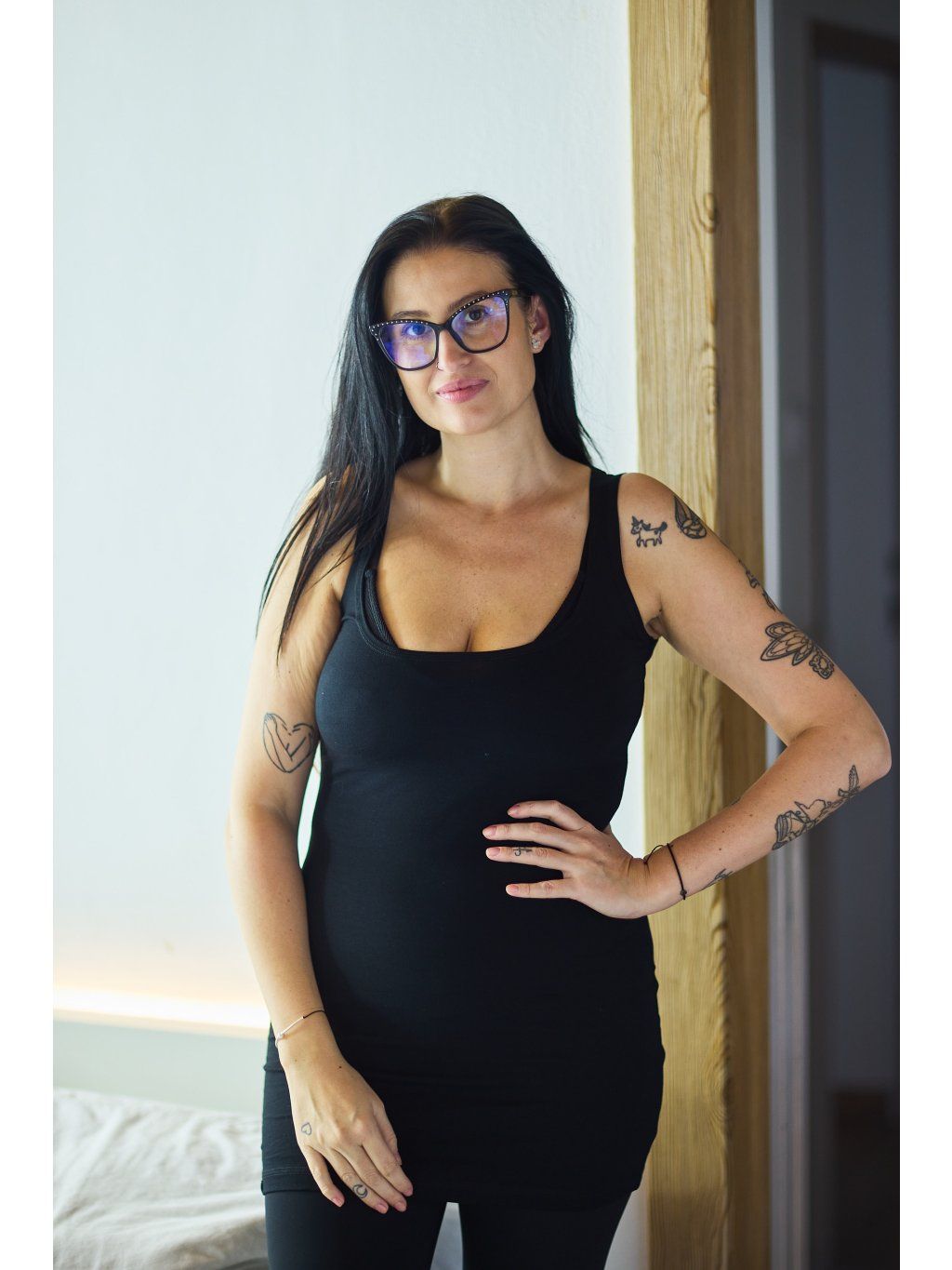 Klasické vyštíhlené tílko, které se hodí snad ke všemu. Má delší střih a materiál je slabší bavlna/elastan.