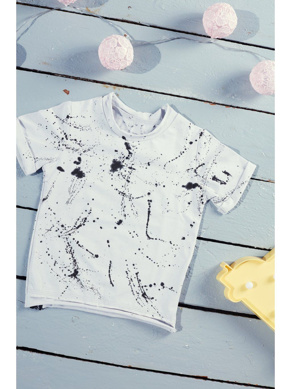 Tričko je ručně stříkané.