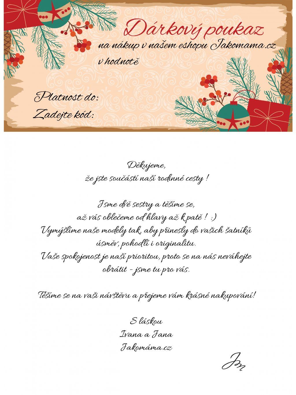VANOČNÍ DÁRKOVÝ POUKAZ