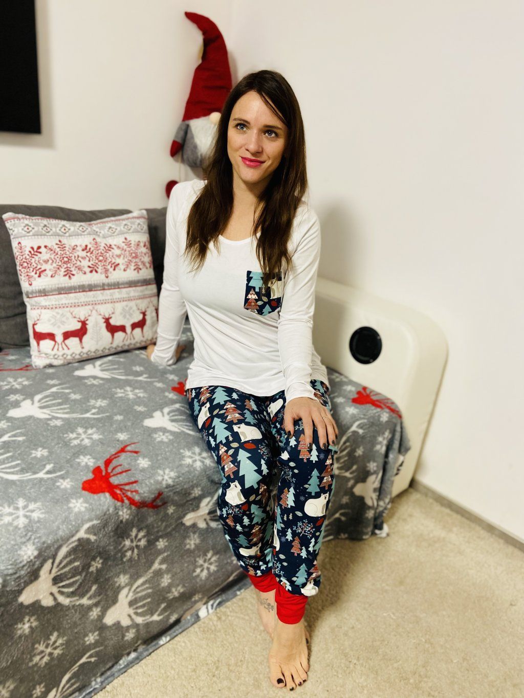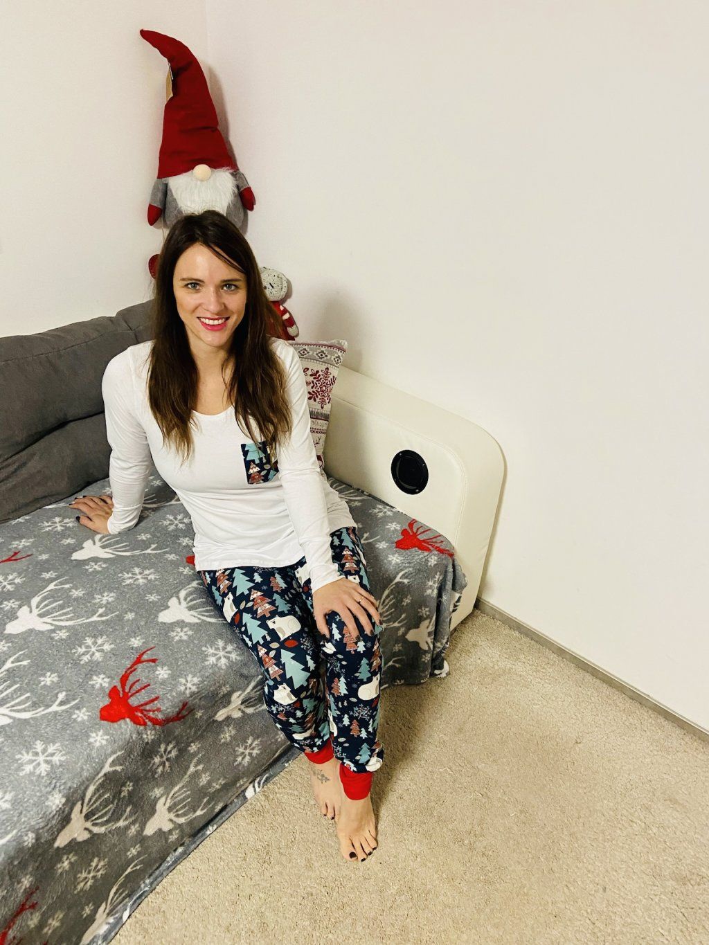 Pyžámko sedí akorát, je spíš volnější, nedoporučujeme brát větší velikost.